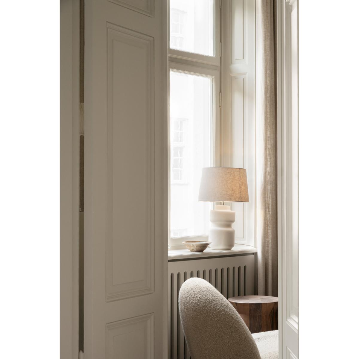 I love this lamp base because of its versatile, modern silhouette and its soft ivory tone, which adds warmth without overpowering a space. It works particularly well in contemporary or minimalist interiors, but can also be styled in eclectic settings for a touch of understated elegance. To create a balanced look, pair it with a simple drum shade in neutral or textured fabrics. Practical tips include placing it on a side table or console to add ambient lighting and a decorative touch, while keeping the colour palette cohesive by choosing accessories in complementary shades. Its 37cm height makes it ideal for bedside tables or desks, providing both style and function without overwhelming smaller spaces.