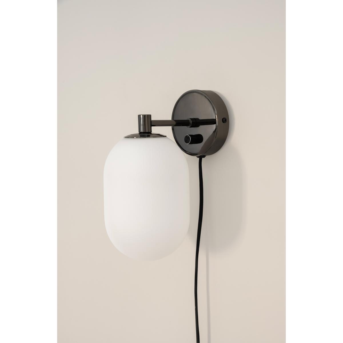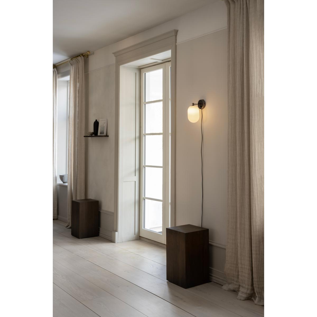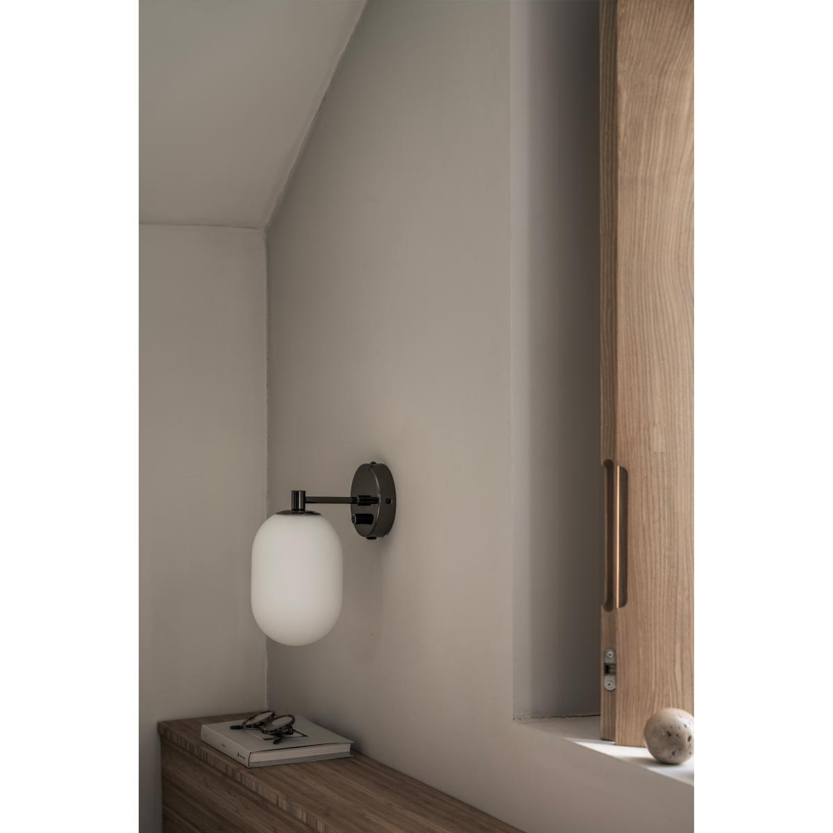 Noor wall lamp 18 cm from Watt&Veke is a sleek fixture that combines timeless form with modern function. The mouth-blown glass shade diffuses a soft, pleasant light, while details in black chrome and the textile cord create an elegant contrast. The lamp has a built-in dimmer on the wall mount, making it easy to adjust brightness and create the right ambiance at home. For increased flexibility it can be installed either with a cord or hardwired. With its compact size and thoughtful design, the Noor wall lamp is a decorative and functional lighting solution for the bedroom, living room, or hallway.