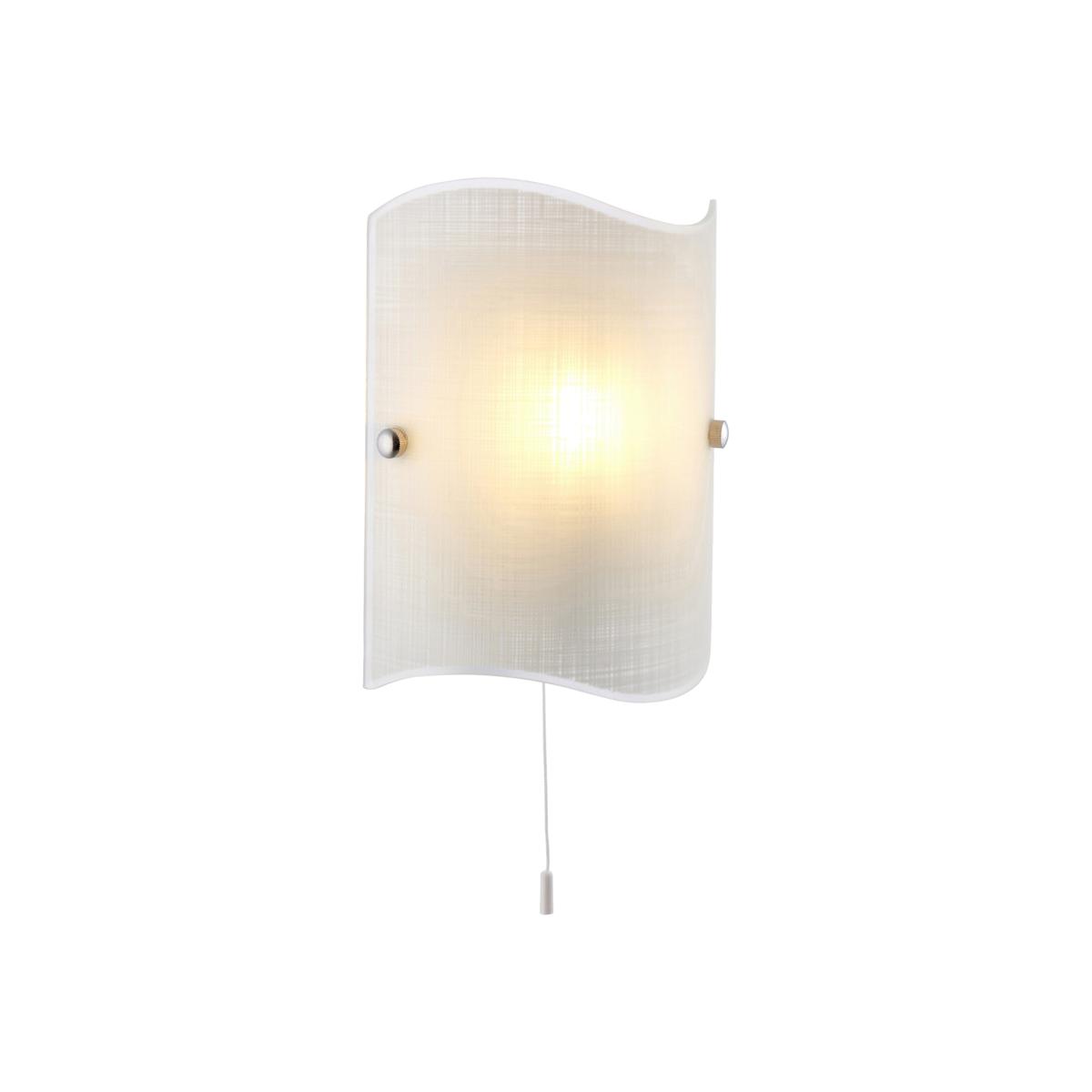 Simple glass wall light with pull cord switch complete with a shaped opal glass diffuser. This fitting is suitable for use with LED lamps and is dimmable