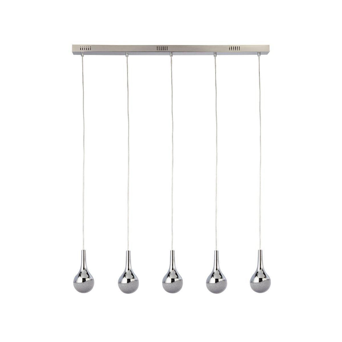 Contemporary 5 light LED pendant boasting polished chrome Add a modern touch to your home with the Wave ceiling pendant. Featuring 5 hanging crystal drops, polished chrome finish and integrated LED technology. Perfect for use above dining areas, kitchen islands and breakfast bars.  Contemporary 5 light LED pendant boasting polished chrome Add a modern touch to your home with the Wave ceiling pendant. Featuring 5 hanging crystal drops, polished chrome finish and integrated LED technology. Perfect for use above dining areas, kitchen islands and breakfast bars.