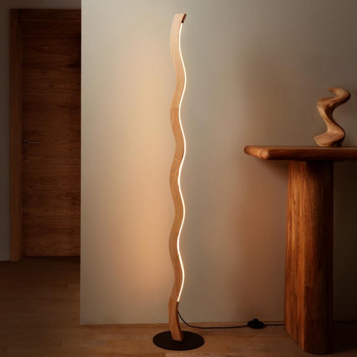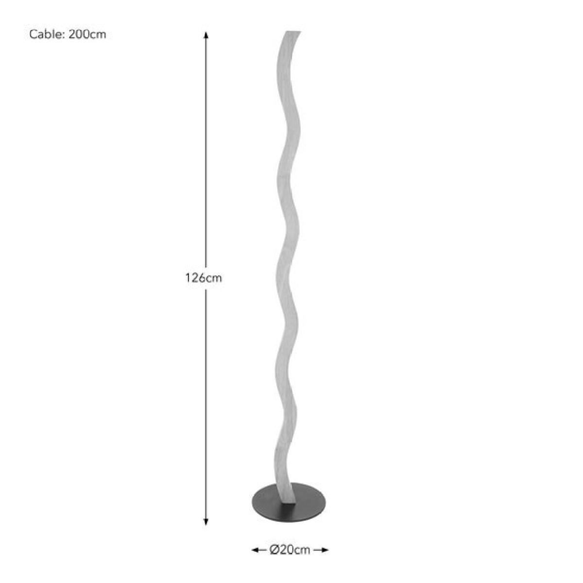 * Stylish, Modern Design * Made from Wood & Steel * Warm White Bulb Colour * Integrated LED Bulb * In-Line Foot Switch * 2m Cable Length Sleek, sculptural, and full of character — the Wave Floor Lamp is a bold addition to any space. It's made from real wood, creating a striking silhouette that glows with a soft, warm white light. Offers a discreet in-line foot switch and a 2m black braided cable for easy placement.
