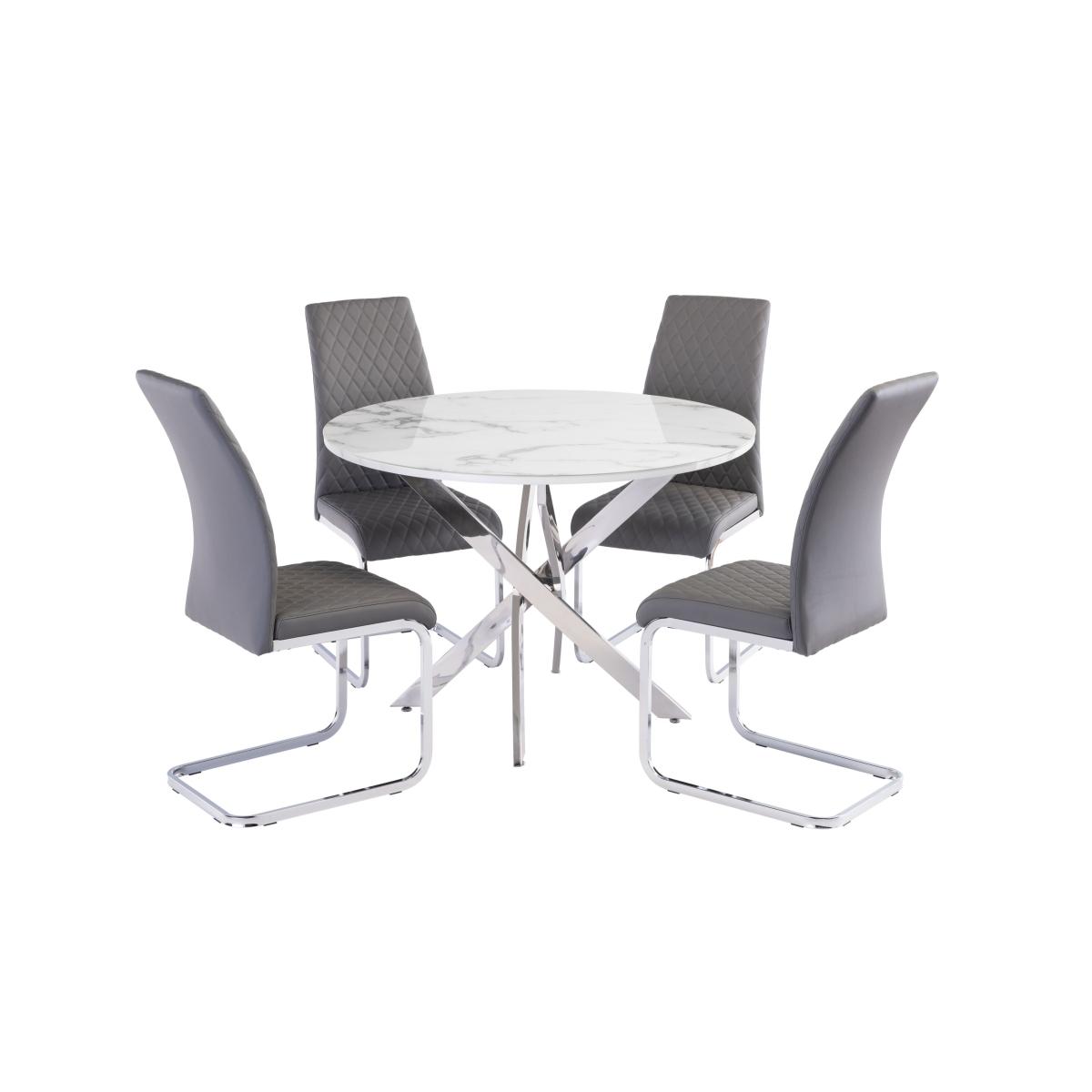 Waverley 4 Seater Round Dining Table, White Marble Effect White/Grey