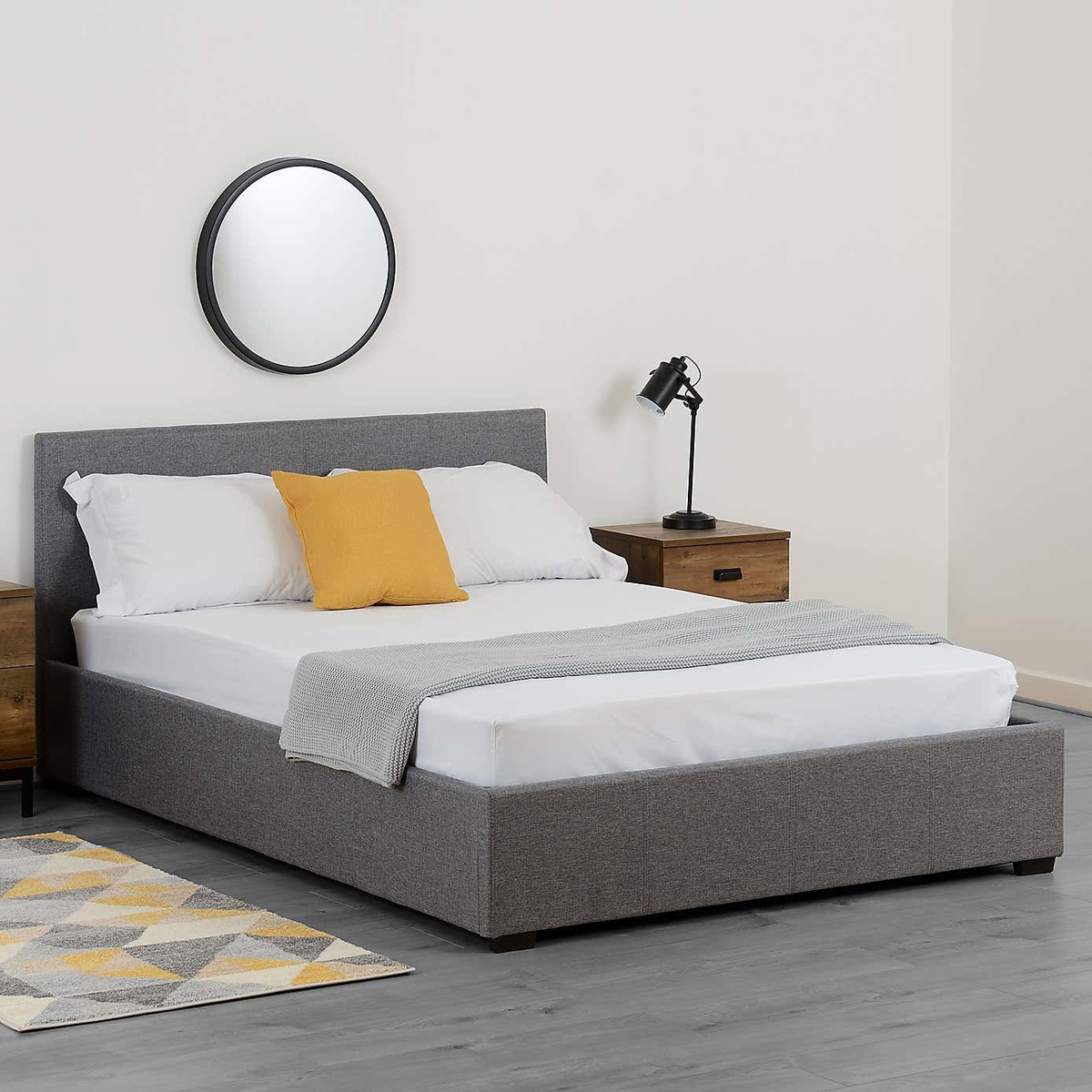 Offering a practical modern design, the Waverley bedstead features a handy gas-lift ottoman mechanism that easily lifts to reveal ample storage space beneath. This handy, self-assembly storage bed is upholstered in a grey linen fabric that would complement any décor style and comes complete with foam padding and sprung slats to provide added comfort and support. Please note, unfortunately we cannot deliver this item to Northern Ireland or the Channel Islands.
