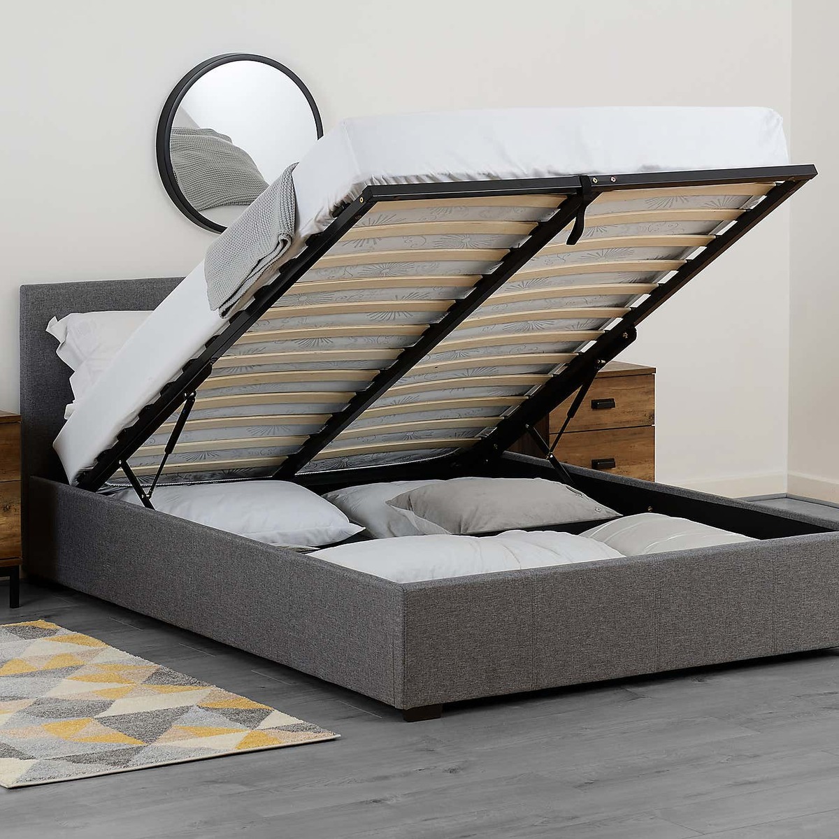 Offering a practical modern design, the Waverley bedstead features a handy gas-lift ottoman mechanism that easily lifts to reveal ample storage space beneath. This handy, self-assembly storage bed is upholstered in a grey linen fabric that would complement any décor style and comes complete with foam padding and sprung slats to provide added comfort and support. Please note, unfortunately we cannot deliver this item to Northern Ireland or the Channel Islands.