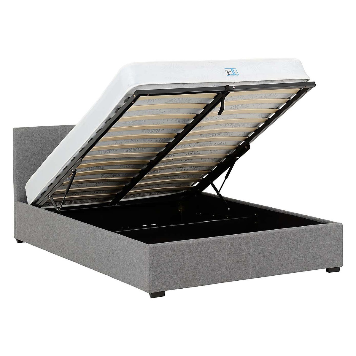 * Classic stitched fabric finish* Sprung slatted base- for added support and comfort* Timeless cushioned headboard* Gas-Lift bottom opening bed which opens to reveal ample under bed storage Offering a practical modern design, the Waverley bedstead features a handy gas-lift ottoman mechanism that easily lifts to reveal ample storage space beneath. This handy, self-assembly storage bed is upholstered in a grey linen fabric that would complement any décor style and comes complete with foam padding and sprung slats to provide added comfort and support. Please note, unfortunately we cannot deliver this item to Northern Ireland or the Channel Islands.