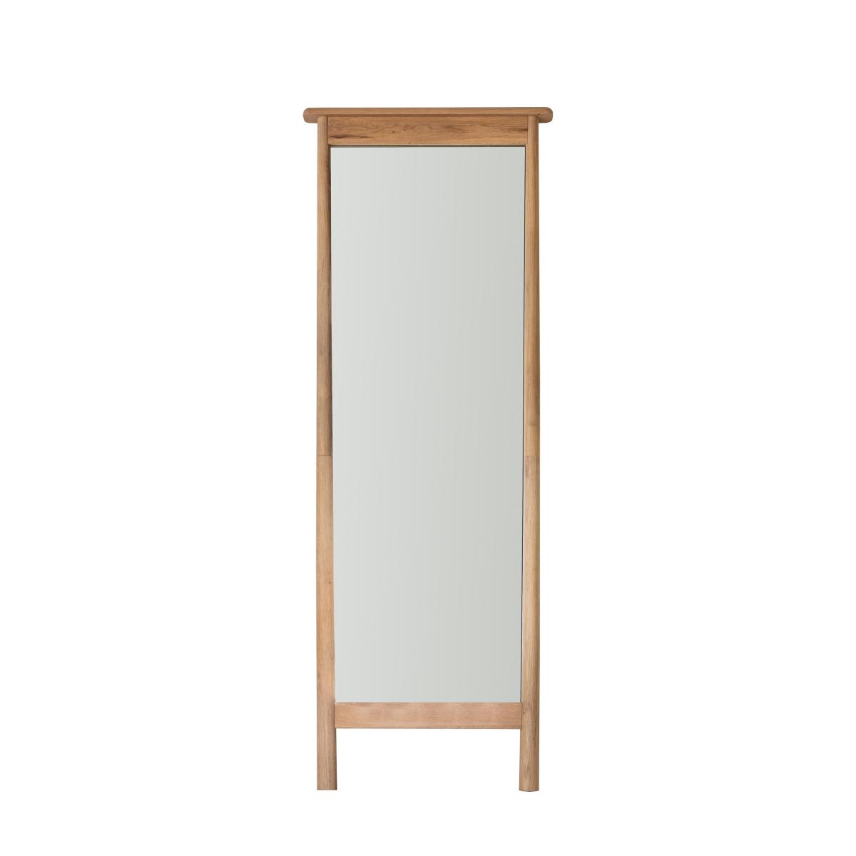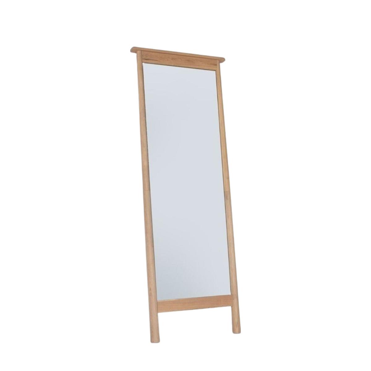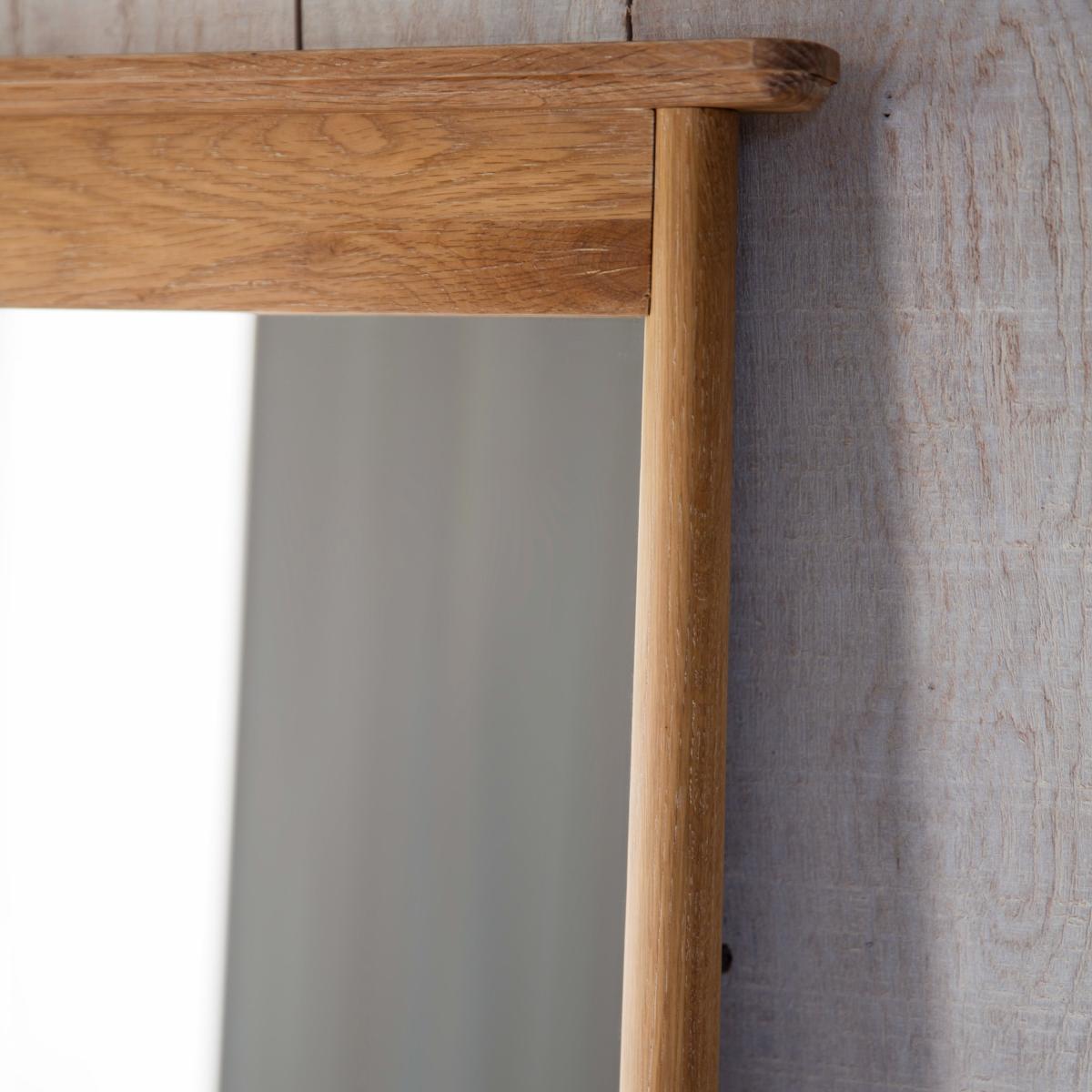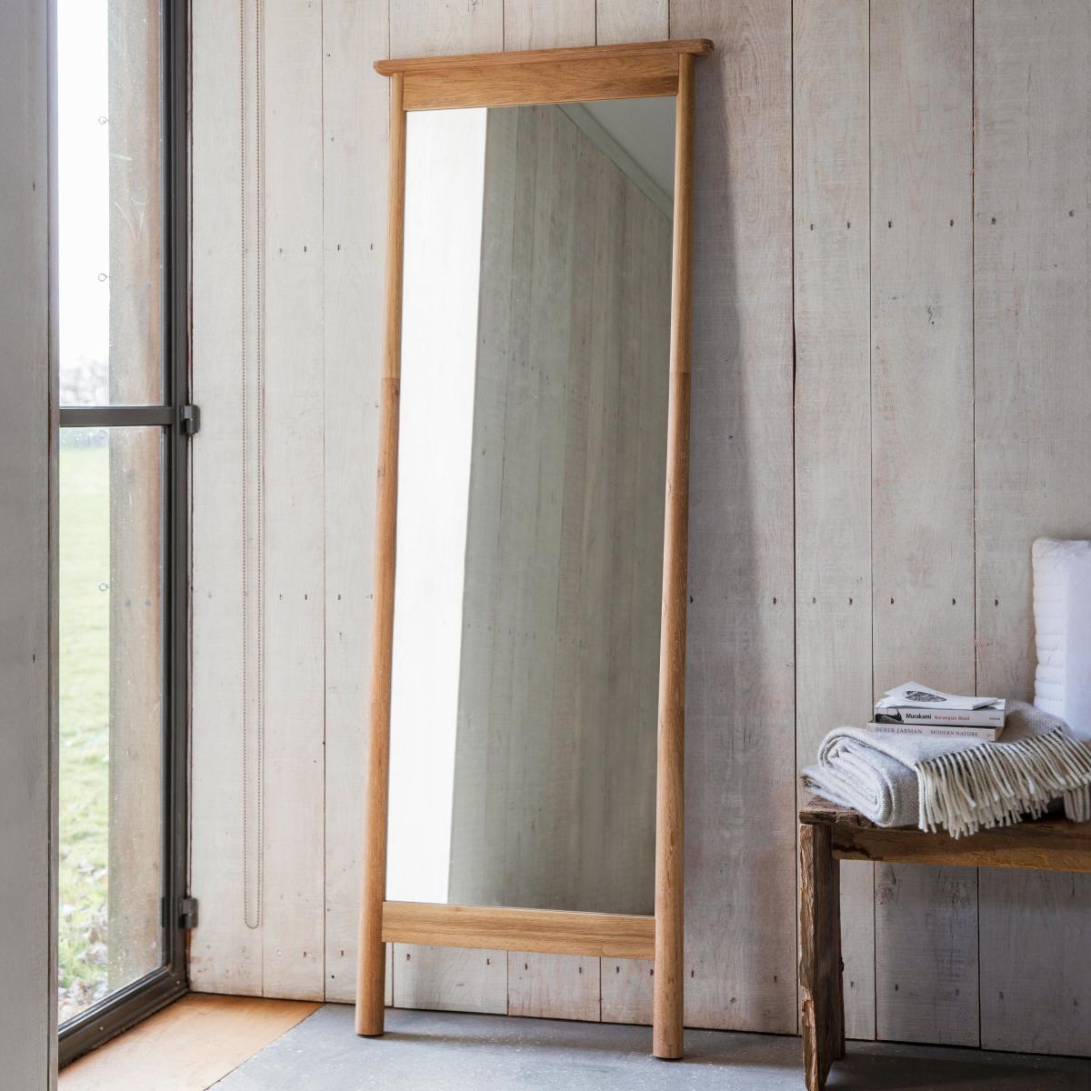 * Full length* Wooden frame* Freestanding Made from a combination of solid oak and veneers, this full-length freestanding mirror is perfect as a focal point in the bedroom or living room. Its contemporary style and wooden finish will lend itself to any style of décor.