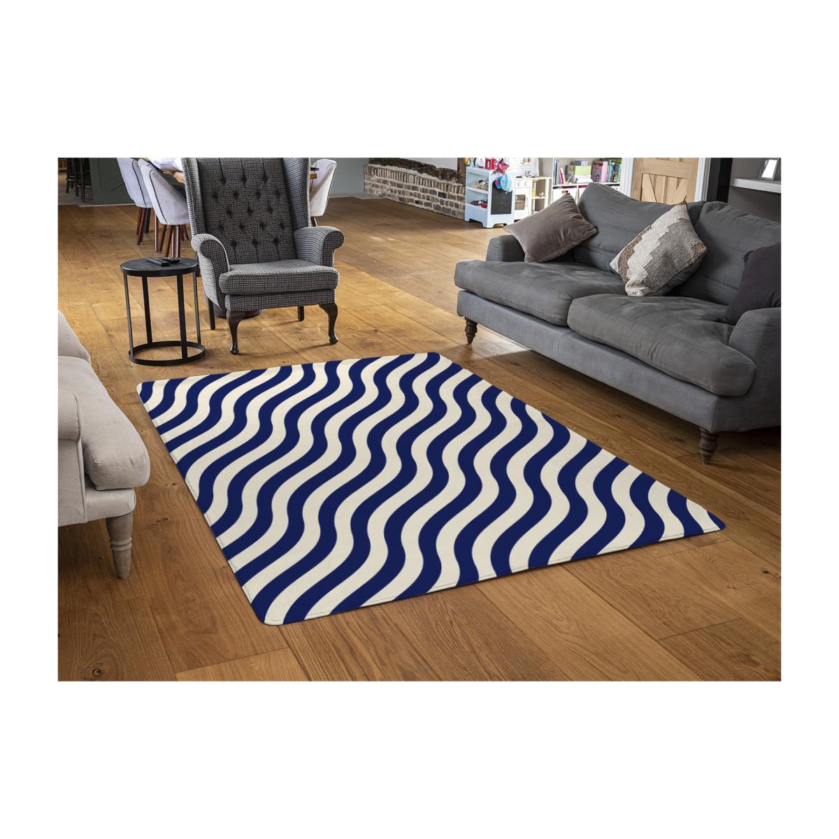 The wavey lines rug in blue is an excellent choice for adding visual interest to a living space without overwhelming it. I love how the bold, modern pattern can anchor a seating area, especially in neutral or monochrome interiors. It works well in contemporary settings but can also add a playful touch to more eclectic schemes. For styling, I recommend pairing it with simple furniture and minimal accessories to let the pattern stand out. To keep the look cohesive, consider adding cushions or throws in colours from the rug, like navy or grey, for a coordinated finish. Its size makes it suited for smaller to medium zones, like a living room or a cosy reading nook, adding both colour and texture effortlessly.
