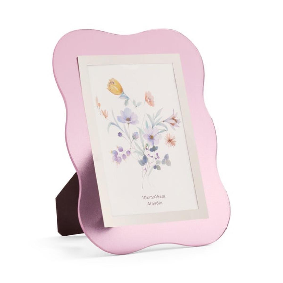 * Glass frame * Wavy edge design * Choice of colours * Freestanding * 6" x 4" photo size Bring soft colour and stylish glass to your displays with this Wavy Glass Photo Frame. Designed to hold a 6" x 4" photo, this frame is made from softly coloured glass in a choice of hues, and is freestanding. Perfect for placing on a mantelpiece, shelf or side table, this frame is the ideal way to showcase your favourite photos.