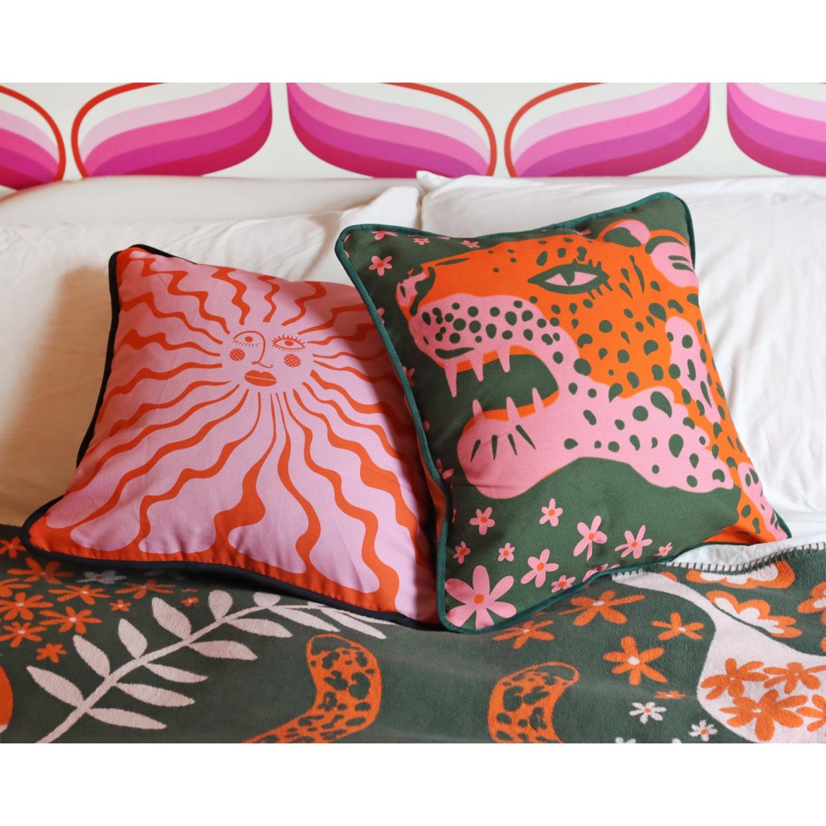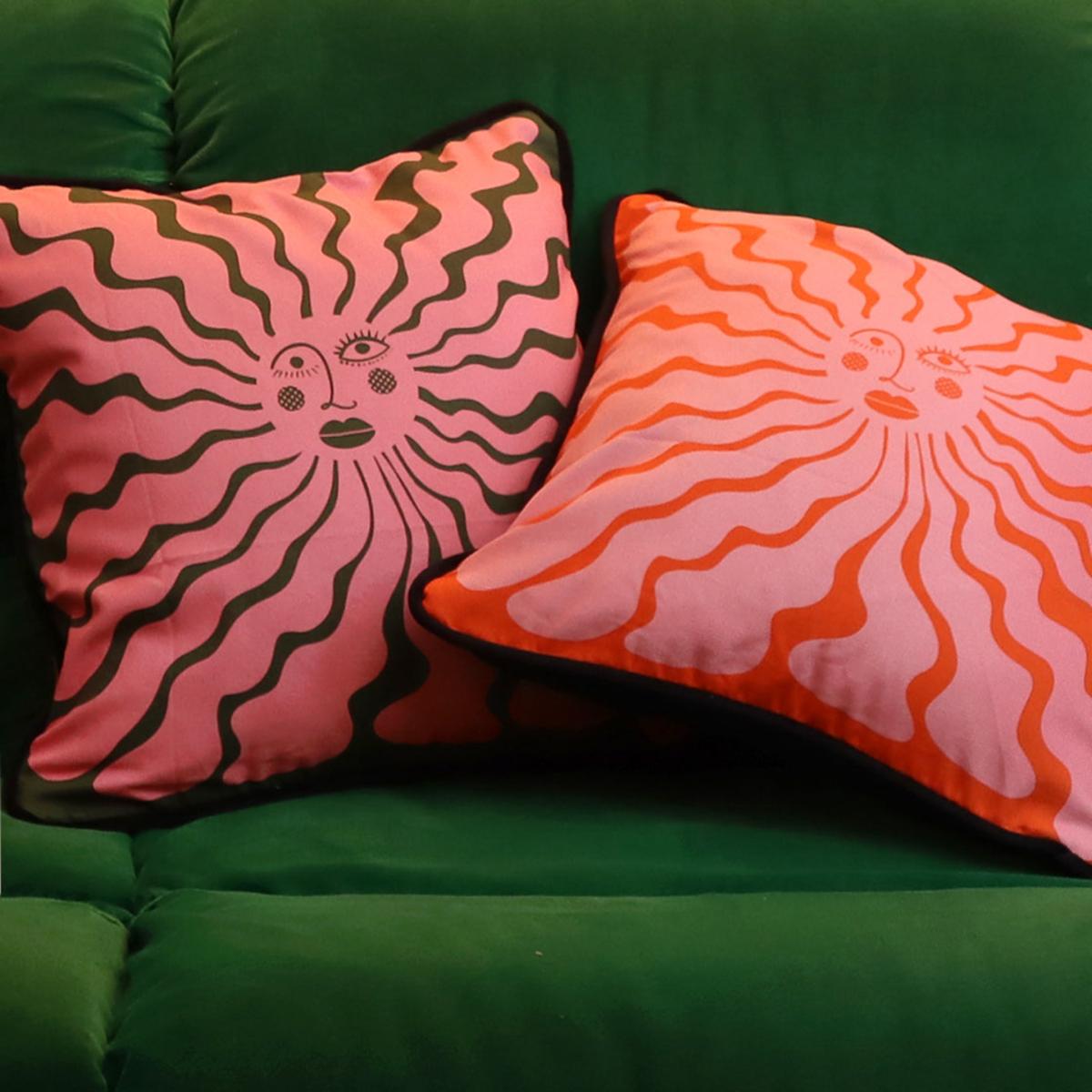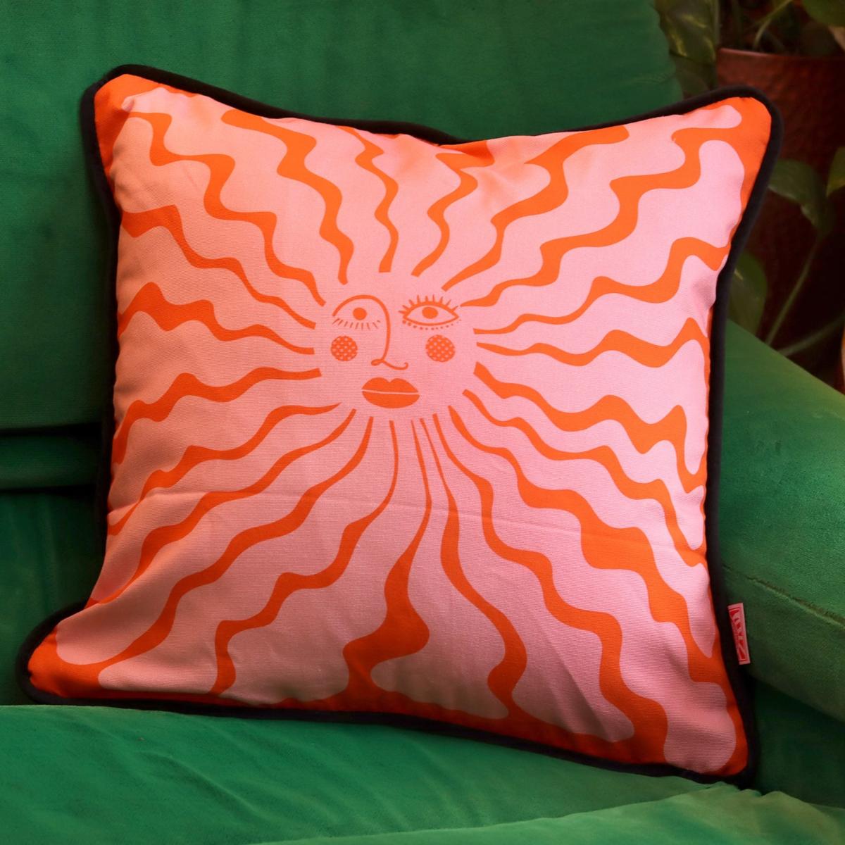 I really love this little sunburst cushion for adding a playful pop of colour and personality to a space. Its bold orange and pink hues work well in both neutral and more vibrant interiors, making it a versatile accessory. It’s especially suited to casual or eclectic styles-think boho, modern desert-inspired, or even a relaxed lounge area. Practical styling tips include mixing it with textured cushions in natural fabrics to create an interesting layered look or pairing it with neutral tones to let the sunshine theme shine. It’s a great piece for injecting some fun into sofas, beds, or armchairs without overwhelming the rest of the décor.
