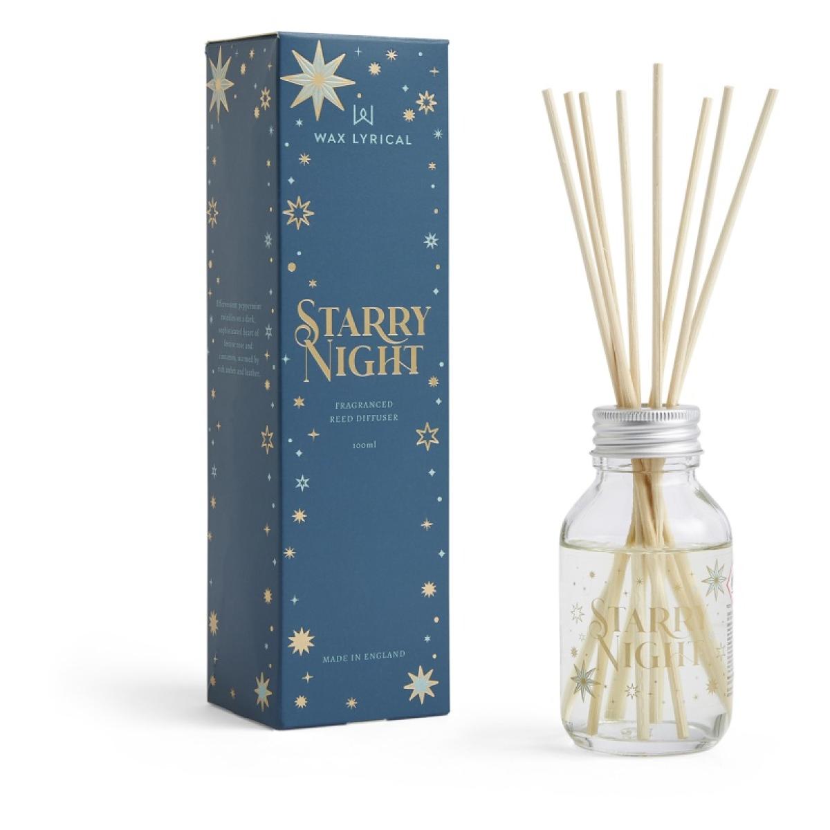 Transform your home into a serene winter retreat with the Wax Lyrical Starry Night Reed Diffuser – 100ml. Inspired by the enchanting beauty of a winter's night, this elegant diffuser fills your space with the calming, crisp scent of fresh winter air, mingling with hints of sweet berries and delicate florals. Perfect for creating a tranquil, festive atmosphere throughout the colder months, this diffuser offers a long-lasting fragrance experience. Features: Enchanting Winter Fragrance: A beautifully balanced blend of effervescent peppermint that twinkles on a dark, sophisticated heart of festive rose and cinnamon, all warmed by rich amber and leather. Long-Lasting Scent: With its 100ml bottle, this reed diffuser ensures your home is continuously filled with its delightful fragrance for up to 12 weeks, providing a long-lasting and constant sensory experience. Elegant Design:Housed in a sleek and sophisticated glass bottle, the Starry Night Reed Diffuser adds a touch of elegance to any room, complementing your home décor with its minimalist, refined design. Ideal for the Winter Season: Perfect for creating a cosy, festive atmosphere during winter months or for adding a gentle, welcoming fragrance to your home year-round. Perfect Gift Idea:This beautifully packaged reed diffuser makes a thoughtful gift for anyone who enjoys premium home fragrances and sophisticated décor. With its enchanting scent and stylish presentation, the Wax Lyrical Starry Night Reed Diffuser – 100ml is the ideal addition to any room, offering a subtle yet luxurious fragrance experience for your home.
