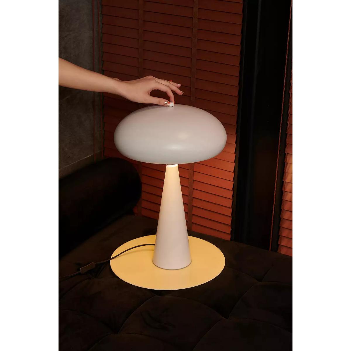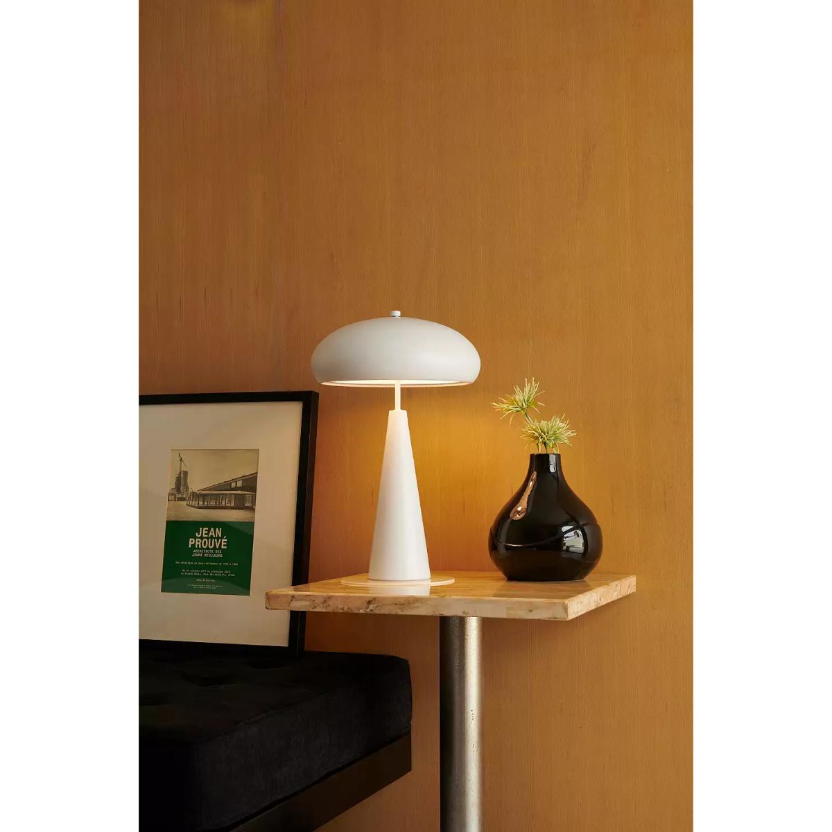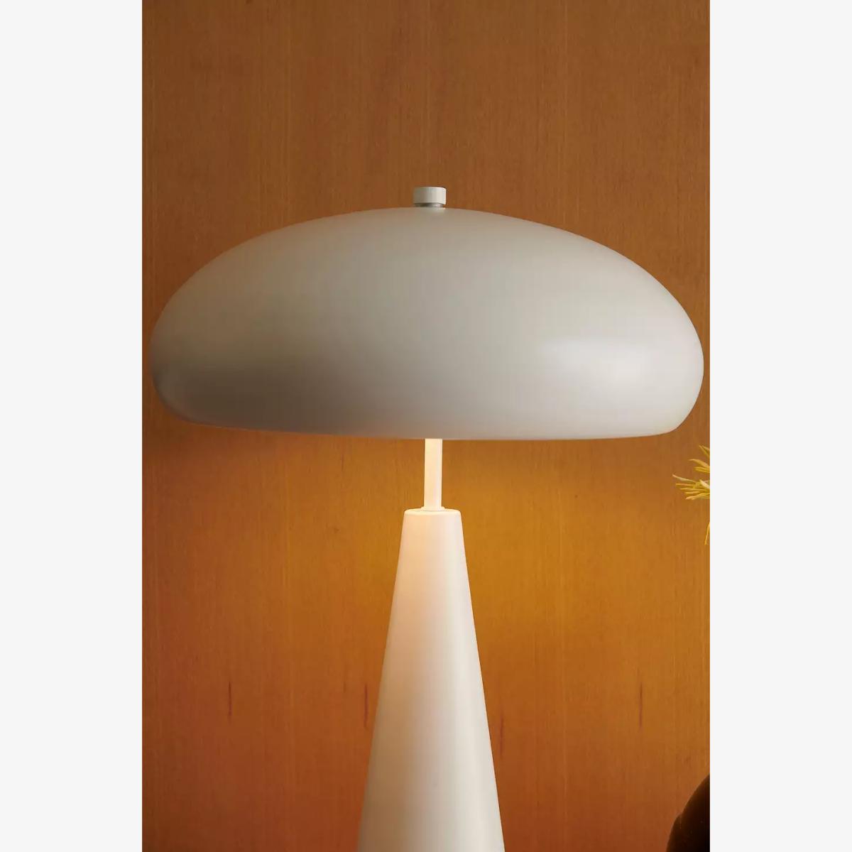 Add modern minimalism to your space with this warm glow lamp by We Are Nook. Featuring a retro 70s-inspired design, this metal lamp offers a round lamp shade and an angled base with clean, contemporary lines. Finished with a powder-coated metal covering and a removable button detail at the top. Complete with an in-line switch and plug in to power on. **Content + Care** \- Metal \- Wipe clean \- Includes UK & EU plugs **Size** \- 46cm x 30cm x 30cm