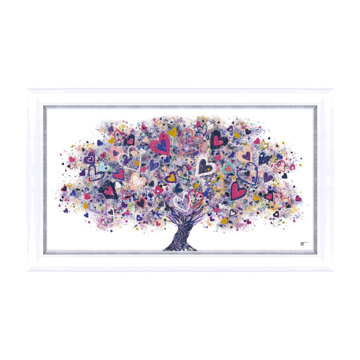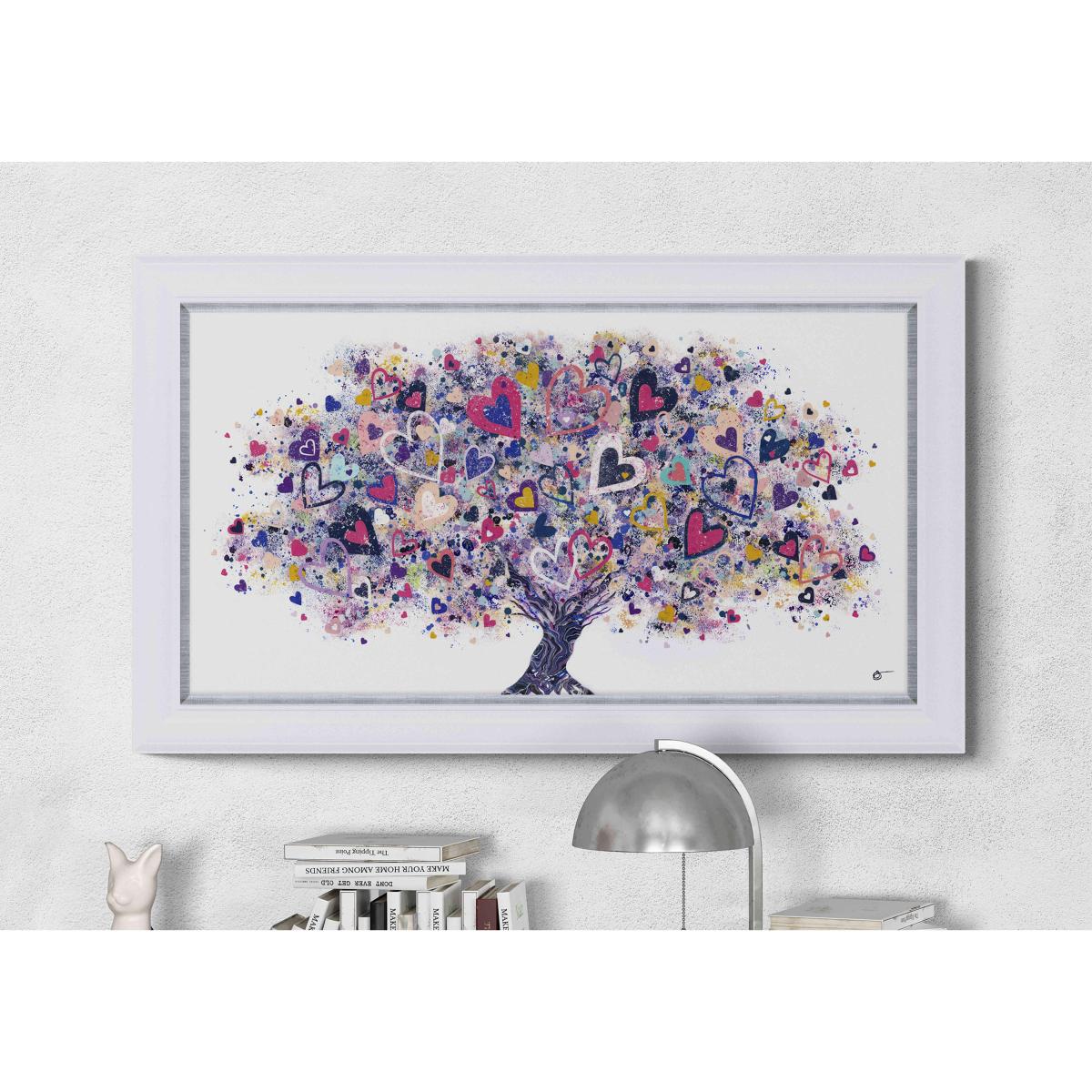 Contemporary in style, this beautiful framed picture of a tree teems with life and colour. Presented in a glossy white and silver frame, it’s beautifully hand finished. Why you'll love it The tree in this framed picture dances with life and vitality. Contemporary style. Carefully reproduced from an original artwork by Sara Otter. In a pretty palette of pinks and purples with yellow accents. Hand finished with acrylics for a vibrant, textured look. Presented in a glossy white and silver-accented frame. Made in the UK. An online exclusive. This framed picture is part of the Furniture Village wall art collection. What you need to know Supplied with metal hanging fitting and nylon cord. For indoor use only. Wipe clean with a dry cloth. Do not use detergents or cleaning products. Dimensions Height: 75 cm (30 in). Depth: 2.5 cm (1 in). Width: 125 cm (50 in).