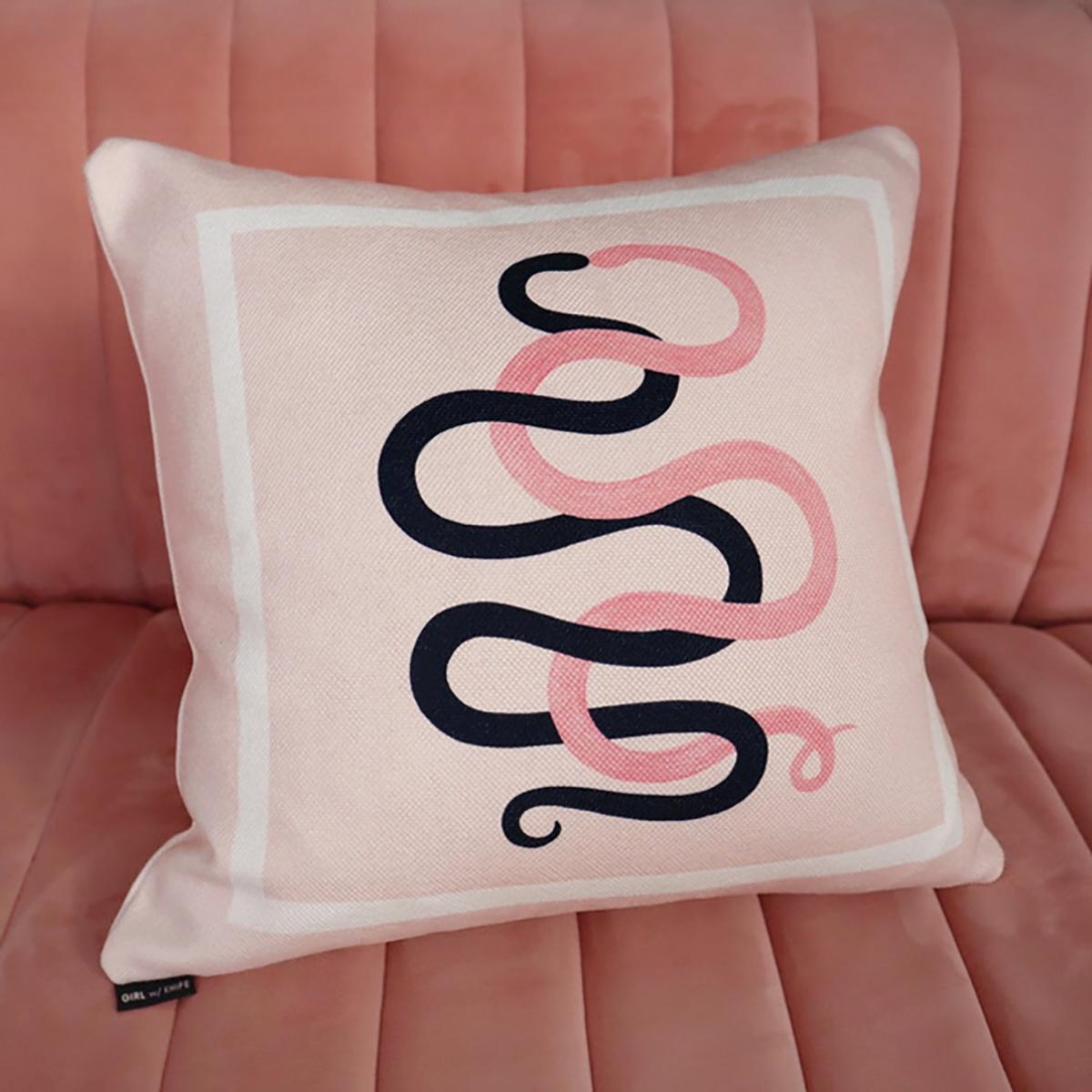 We Just Fit Together pillow. Yin and yang snakes blissfully intertwined for elevated boudoir vibes.