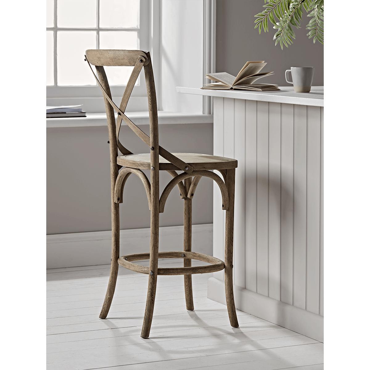 Made from durable and responsibly sourced oak, our elegant bar stool is perfect for a breakfast bar or high table. Featuring a cross back and slender legs, this stool brings a touch of femininity to any kitchen.