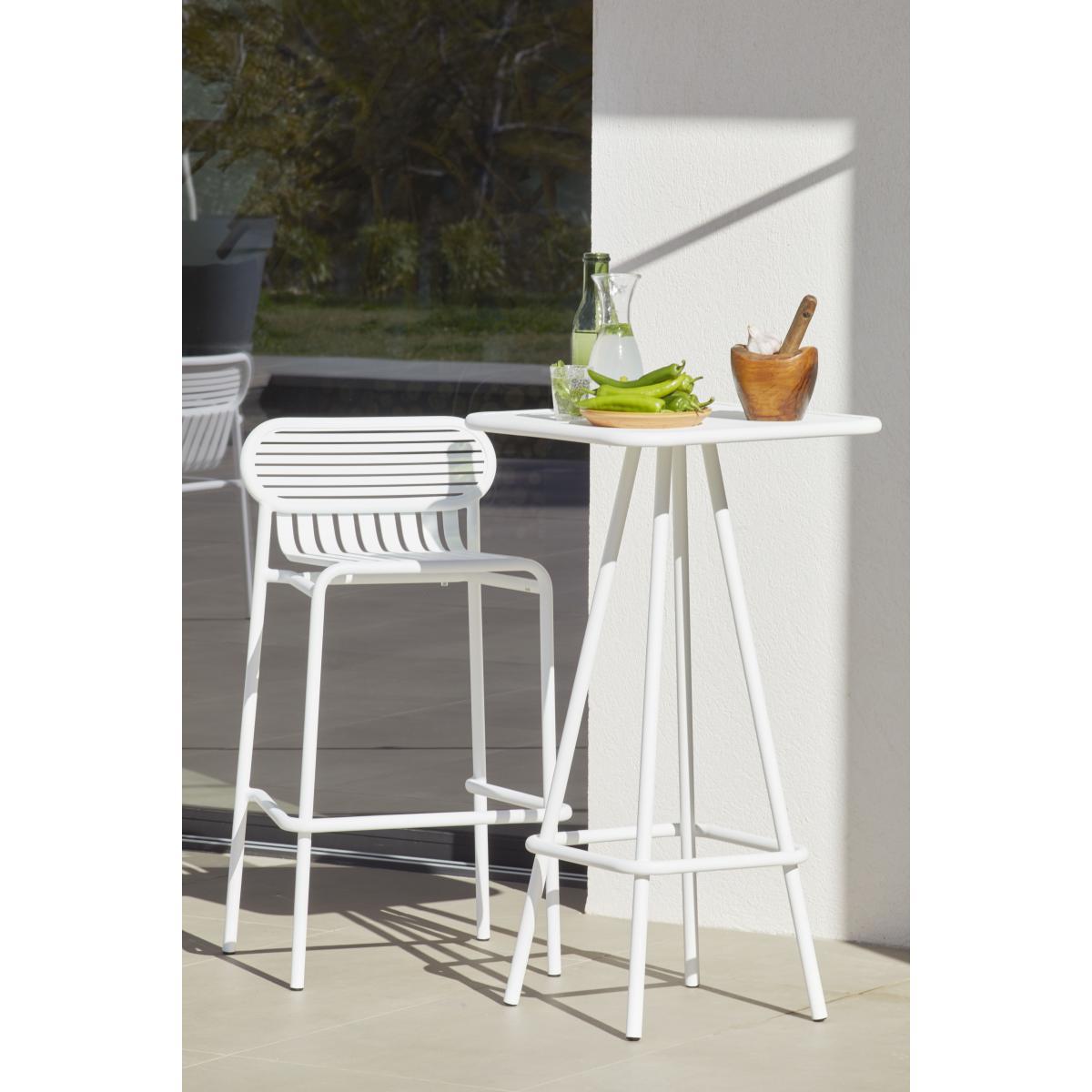 Cheerful, colourful and graphic, the Week-End collection brings life to your garden! This aluminium furniture is light, mobile and handy: a perfect collection for creating a modern outdoor lounge or nice dining area on a terrace or in a kitchen. The Week-End collection was designed by the French studio Brichet. Ziegler. The oval, encircled shape creates the backrests so that they become a graphic sign. The work of the horizontal and vertical slats, like stripes, emphasises the full and empty spaces, affirming the collection’s identity. As pretty as it is functional, the Week-End collection is designed for practical use: all the seats are stackable. The ergonomic shapes are all about user comfort and their individual postures. Can be accessorised with 1 SMALL seat cushion.