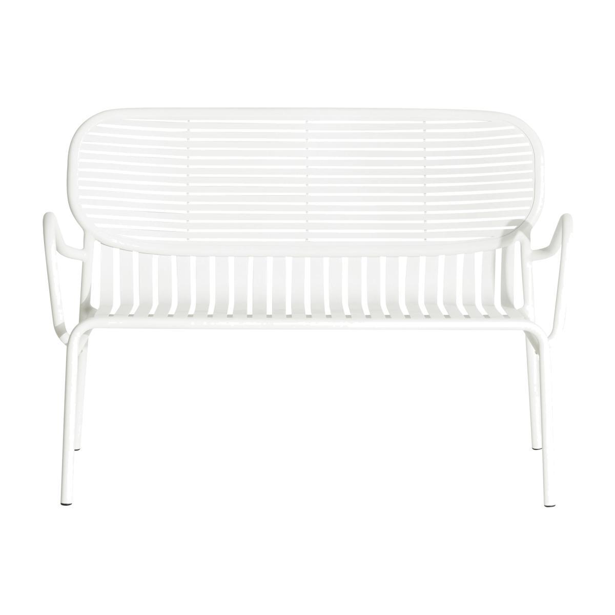 Cheerful, colourful and graphic, the Week-End collection brings life to your garden! This aluminium furniture is light, mobile and handy: a perfect collection for creating a modern outdoor lounge or nice dining area on a terrace or in a kitchen. The Week-End collection was designed by the French studio Brichet. Ziegler. The oval, encircled shape creates the backrests so that they become a graphic sign. The work of the horizontal and vertical slats, like stripes, emphasises the full and empty spaces, affirming the collection’s identity. As pretty as it is functional, the Week-End collection is designed for practical use: all the seats are stackable. The ergonomic shapes are all about user comfort and their individual postures. Can be accessorised with 2 LARGE seat cushions.