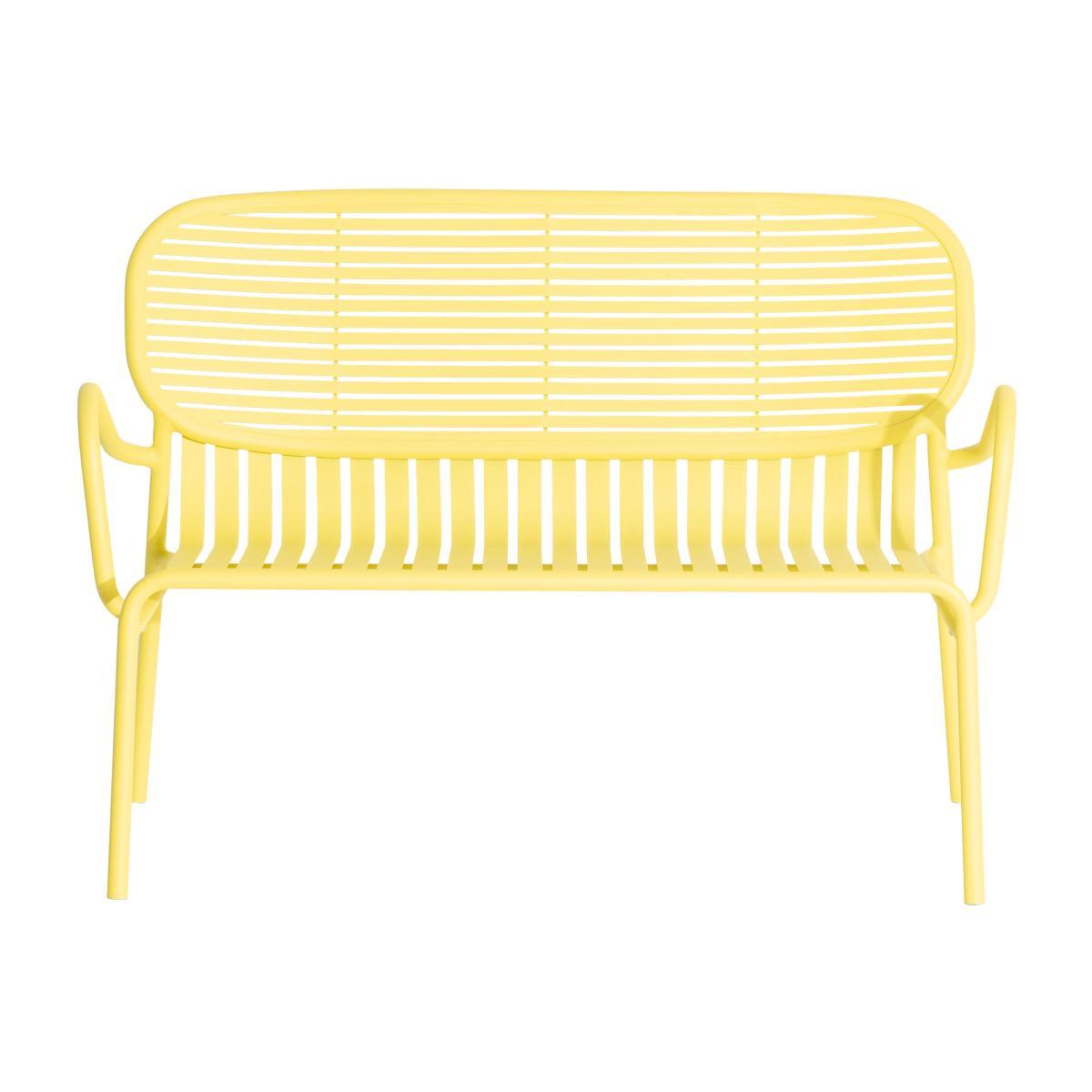 Cheerful, colourful and graphic, the Week-End collection brings life to your garden! This aluminium furniture is light, mobile and handy: a perfect collection for creating a modern outdoor lounge or nice dining area on a terrace or in a kitchen. The Week-End collection was designed by the French studio Brichet. Ziegler. The oval, encircled shape creates the backrests so that they become a graphic sign. The work of the horizontal and vertical slats, like stripes, emphasises the full and empty spaces, affirming the collection’s identity. As pretty as it is functional, the Week-End collection is designed for practical use: all the seats are stackable. The ergonomic shapes are all about user comfort and their individual postures. Can be accessorised with 2 LARGE seat cushions.