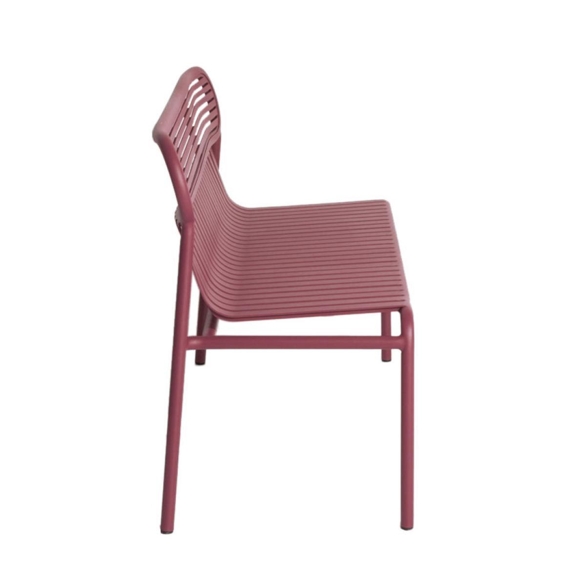 Cheerful, colourful and graphic, the Week-End collection brings life to your garden! This aluminium furniture is light, mobile and handy: a perfect collection for creating a modern outdoor lounge or nice dining area on a terrace or in a kitchen. The Week-End collection was designed by the French studio Brichet. Ziegler. The oval, encircled shape creates the backrests so that they become a graphic sign. The work of the horizontal and vertical slats, like stripes, emphasises the full and empty spaces, affirming the collection’s identity. As pretty as it is functional, the Week-End collection is designed for practical use: all the seats are stackable. The ergonomic shapes are all about user comfort and their individual postures. Can be accessorised with 2 SMALL seat cushions.