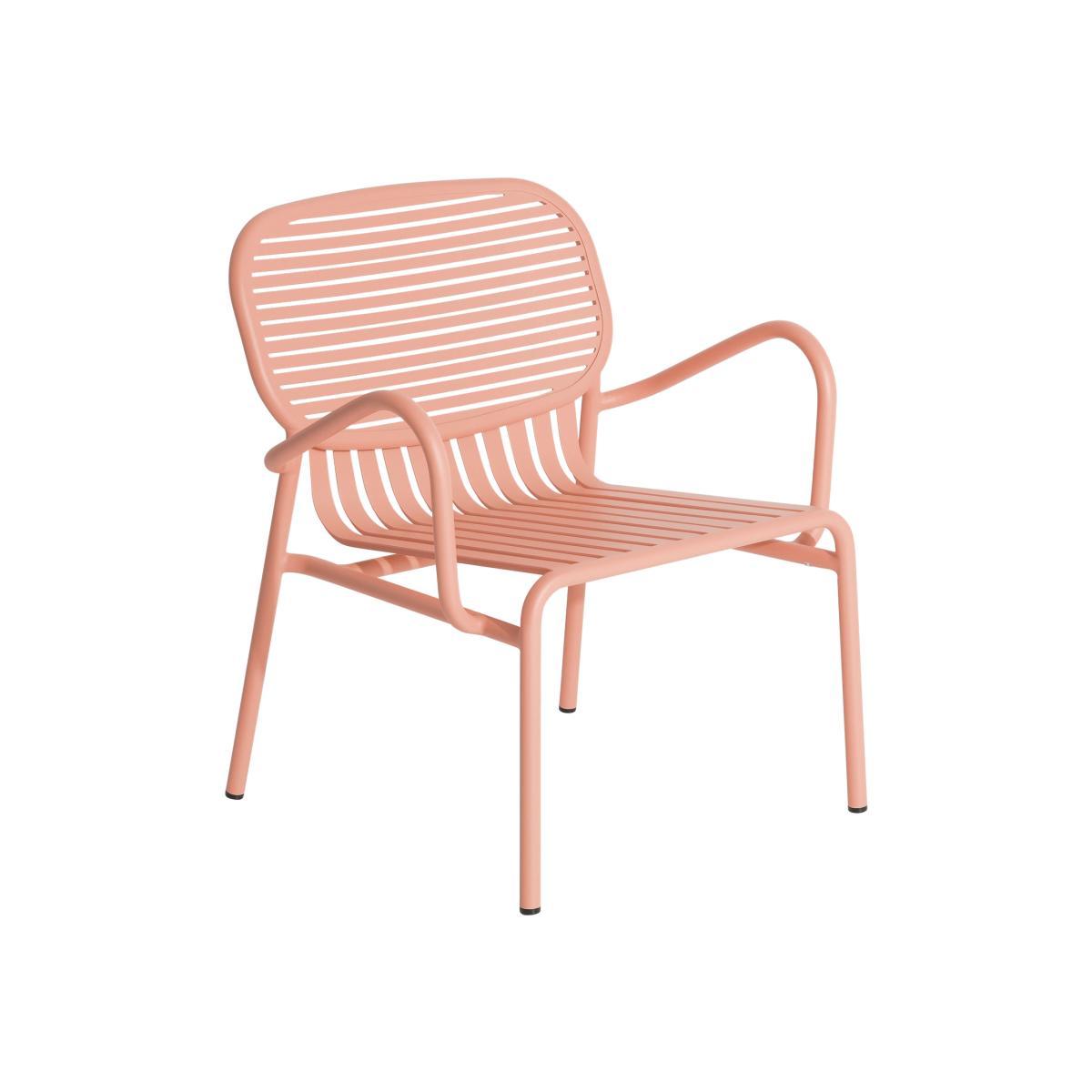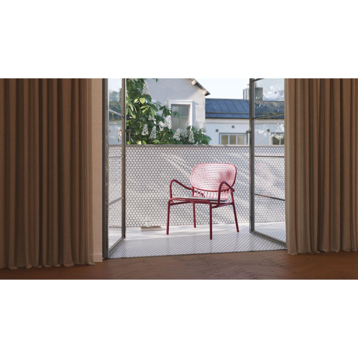 Cheerful, colourful and graphic, the Week-End collection brings life to your garden! This aluminium furniture is light, mobile and handy: a perfect collection for creating a modern outdoor lounge or nice dining area on a terrace or in a kitchen. The Week-End collection was designed by the French studio Brichet. Ziegler. The oval, encircled shape creates the backrests so that they become a graphic sign. The work of the horizontal and vertical slats, like stripes, emphasises the full and empty spaces, affirming the collection’s identity. As pretty as it is functional, the Week-End collection is designed for practical use: all the seats are stackable. The ergonomic shapes are all about user comfort and their individual postures. Can be accessorised with 1 LARGE seat cushion.