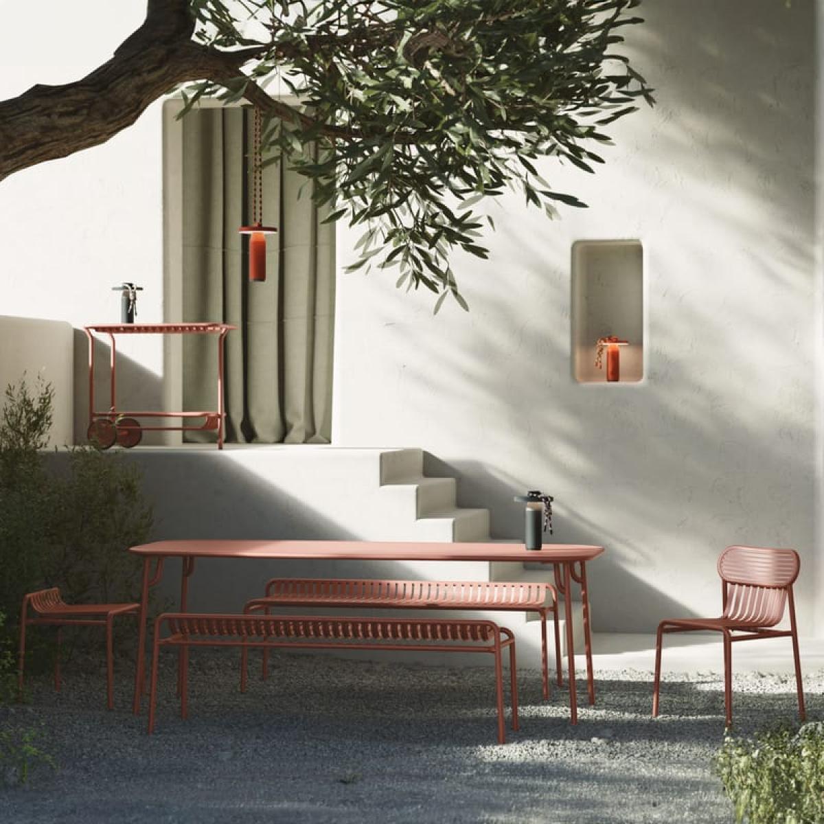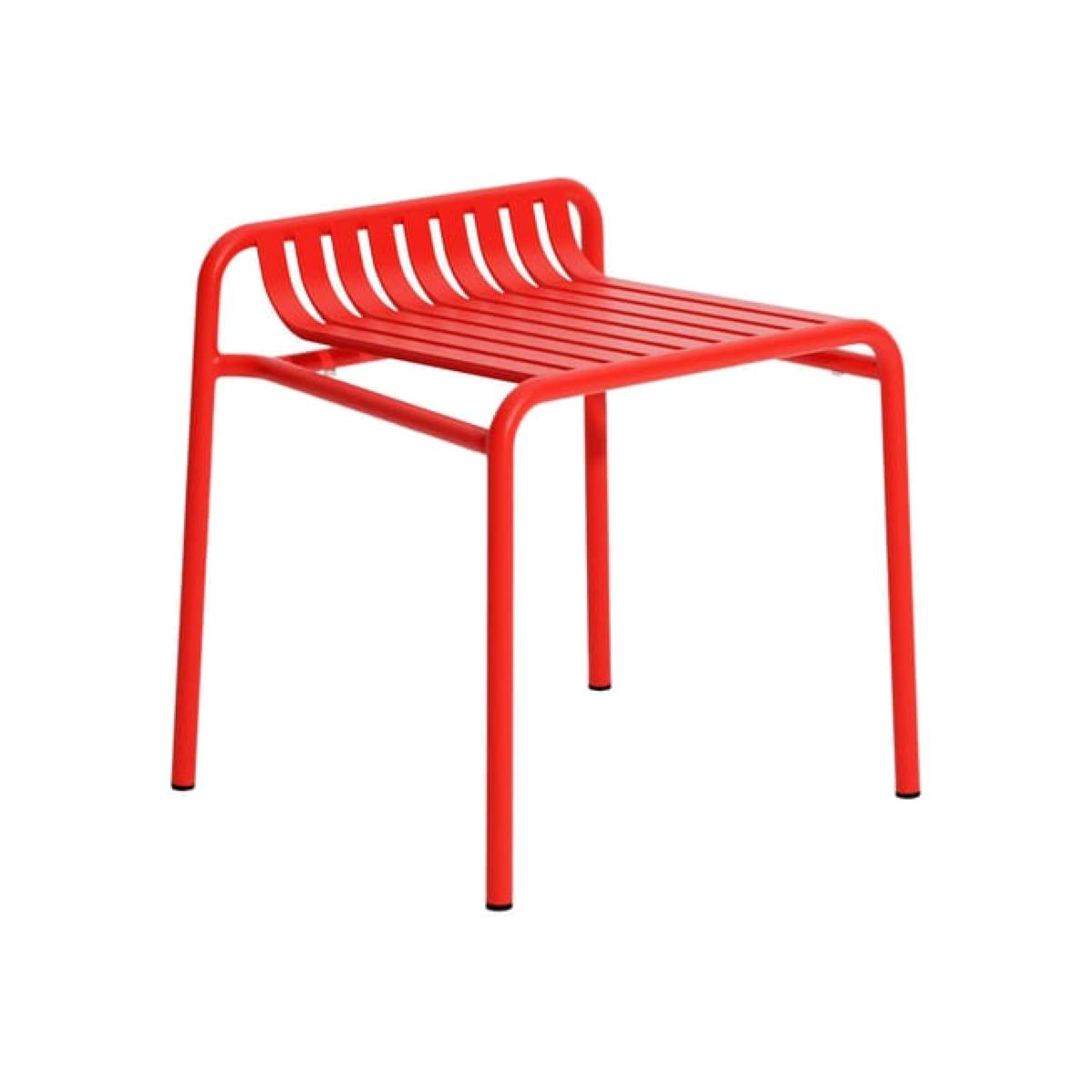 Why choose the Week-End Stackable stool? - Ultra-resistant: Thermolacquered aluminium, for indoor and outdoor use - Stackable 4-high, lightweight and easy to move - Graphic design by Brichet. Ziegler, with a minimalist, assertive silhouette - 5-year warranty, durable and accessorizable with SMALL Cushion A structured, designer garden StoolAn essential part of the Week-End collection, this Stackable stool seduces with its graphic design and discreet yet remarkable presence. Its openwork surface, composed of horizontal slats, plays with light and emptiness, adding rhythm and lightness. Its compact form makes it an elegant and practical occasional seat. Designed for outdoors, sublime indoorsMade from UV-resistant powder-coated Aluminium, this Stool is weather-, UV- and corrosion-resistant. It's equally at home around an outdoor Table or in a modern interior, as additional seating in an entrance hall, bathroom or contemporary living room. Modular, creative seatingAvailable in a wide range of muted or vibrant colors, the Week-End Stool is ideal for graphic compositions with a strong personality. Stackable four-high, it can be accessorized with an optional SMALL Seat cushion, combining versatility and refinement in every detail. The signature of happy, sustainable designDesigned by the Brichet Ziegler duo, the Week-End Stool embodies a free and joyful vision of the art of outdoor living. An essential yet singular piece, designed to endure the years with elegance. Adopt it to enhance your living spaces, both indoors and out. In detail: Variation : Reds Brand : Petite Friture Designer :Studio Brichet Ziegler Type : Stackable stool Colour :Red Material : Aluminium, matt grained epoxy paint, anti-UV powder coating for outdoor use Dimensions :W 54 x D 48 cm x H 45 cm - Back : H53 cm Weight : 14.542 lb Characteristics :Stackable (x 4) - For indoor & outdoor use: weatherproof, UV-resistant, can be used by the sea - Lightweight and very sturdy - 5-year warranty - Can be accessorized with 1 SMALL seat cushion sold separately. Show less