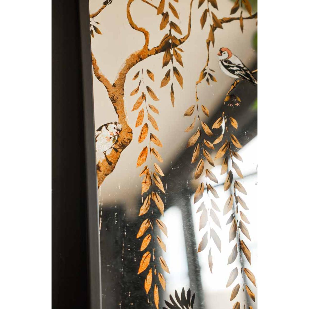 <!--td --> Introducing the Weeping Willow Tree & Bird Mirror – a masterpiece of chinoiserie elegance that transcends mere functionality to become a work of art for your walls. Crafted with meticulous attention to detail, this stunning decorative mirror is more than just a reflection – it's a statement. The intricate design, featuring delicate weeping willow trees and graceful birds, evokes a sense of timeless sophistication and charm. Hang it in your living room, hallway, or bedroom to instantly elevate the ambience of any space. With its captivating beauty and intricate detailing, it's sure to become a focal point of conversation and admiration. Bring a touch of refined luxury to your home décor with the Weeping Willow Tree & Bird Mirror – where art meets functionality in the most exquisite way.