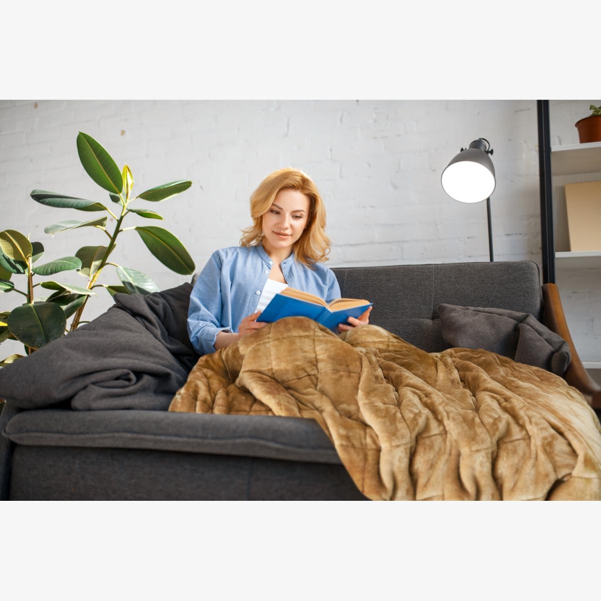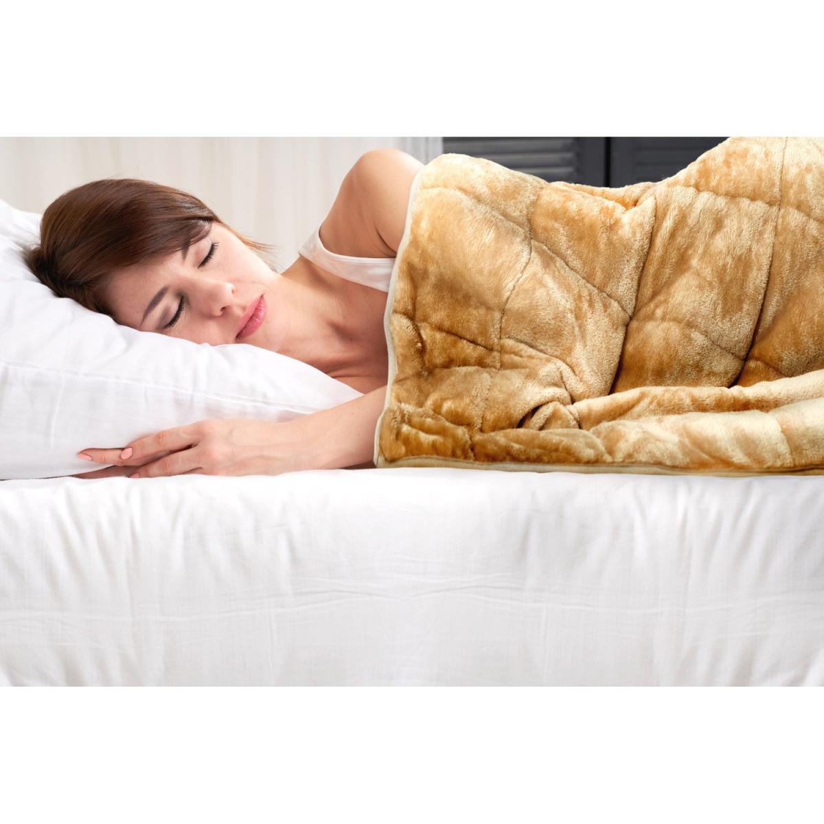 Warm, cosy and reassuringly comfortable. You can use this blanket on either the soft plush side for warmer days or have the fluffy sherpa side keep you extra snuggly. Studies show that a weighted blanket like this one can help you sleep for longer and more deeply with fewer interruptions, and wake feeling more refreshed. This blanket's gentle all-over pressure mimics a subtle human hug, applying something called deep touch pressure therapy (DTP) to your body to keep you still and calm. This pressure increases the serotonin and dopamine levels in your brain, relaxing your nervous system to help reduce anxiety and stress. The blanket is specifically designed to fit your body, not to drape over your bed, so it can be used on any size of mattress.