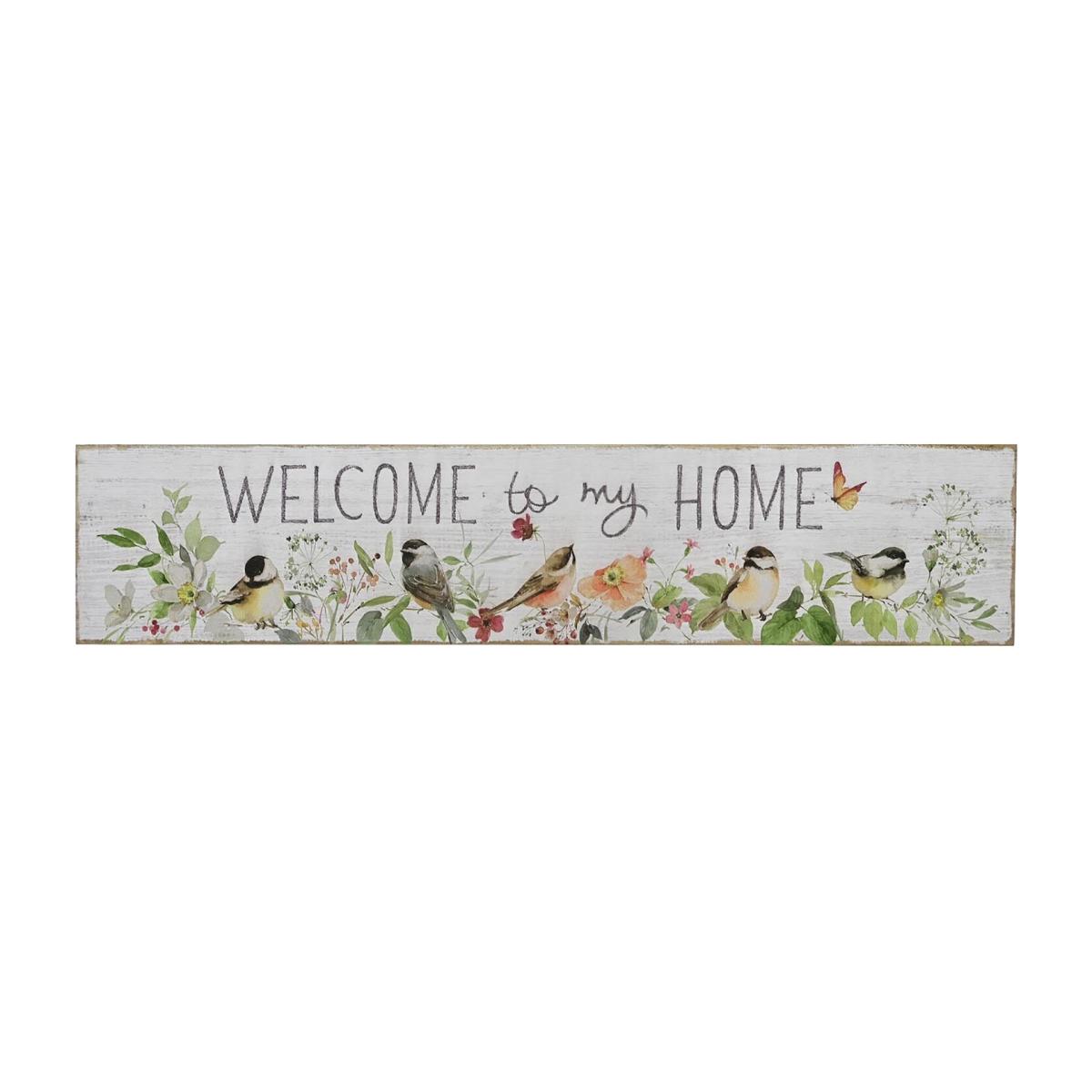 The Welcome to My Home Floral Birds Sign is a pretty plaque that will look spectacular in any space. It has a lovely rustic design which is printed with cute garden birds perching amongst trees and foliage. It's ideal for putting by the front door or garden, making your space feel welcoming and whimsical. It's also easy to hang via the hooks on the back.