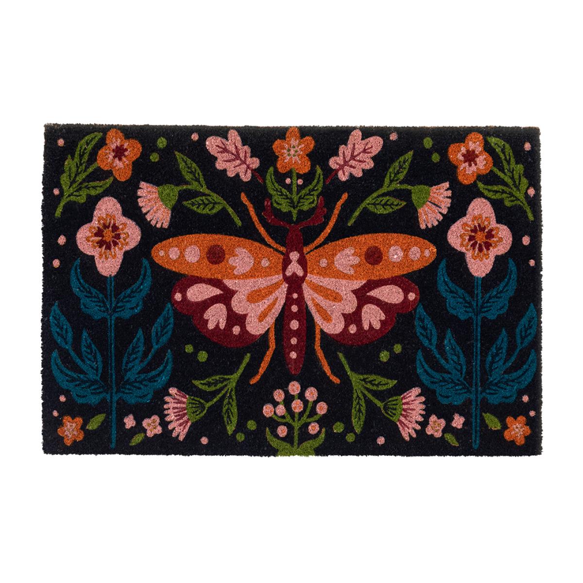 I love this doormat for its vibrant, detailed embroidery and playful butterfly motif - it adds a welcoming touch with a pop of colour. While it works beautifully in eclectic or boho-inspired interiors, it can also bring a charming contrast to more contemporary or minimalist schemes, injecting personality without overwhelming the space. Practical styling tips include placing it in entryways with neutral flooring to highlight its pattern or pairing it with natural fibres like a seagrass or sisal mat outside, to create an inviting yet functional layered look. Its colourful design also makes it a great focal point that can complement a variety of colour palettes, especially those with rich or earthy tones.