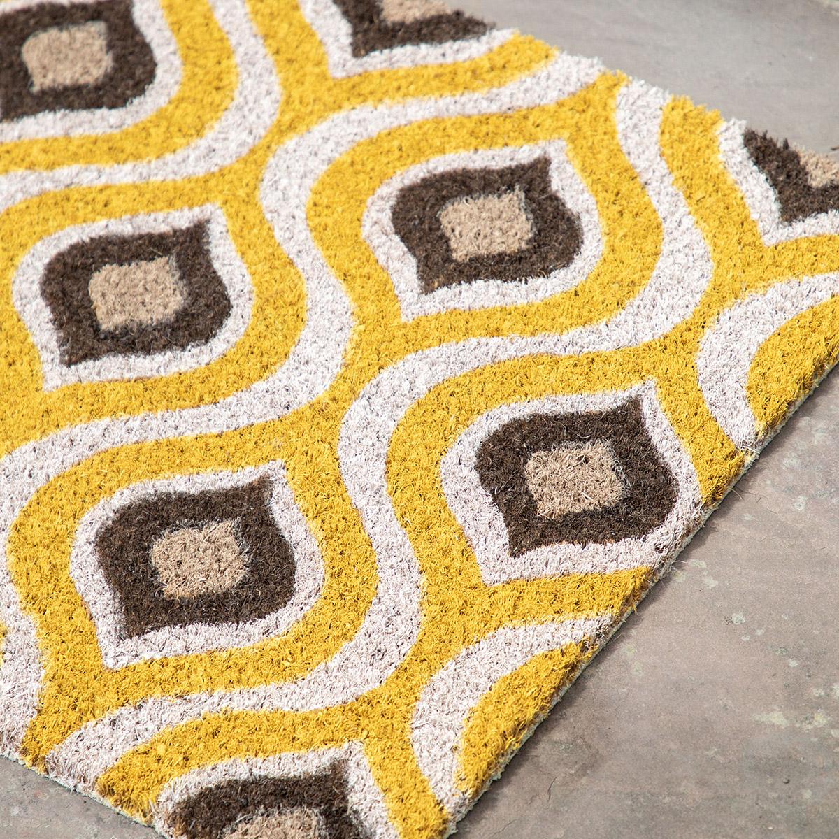 Step into style with the Welcomer Ochre and Natural Coir Doormat, where sleek design meets functionality. Featuring a unique vibrant patterned design, that will make a striking first impression for your home's entrance.