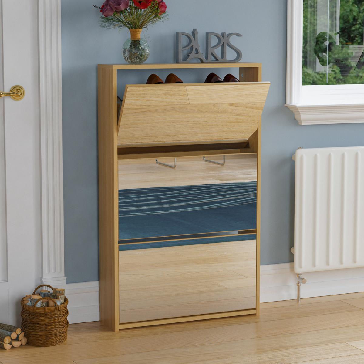 Welham 3 Drawer Mirrored Shoe Cabinet - Oak