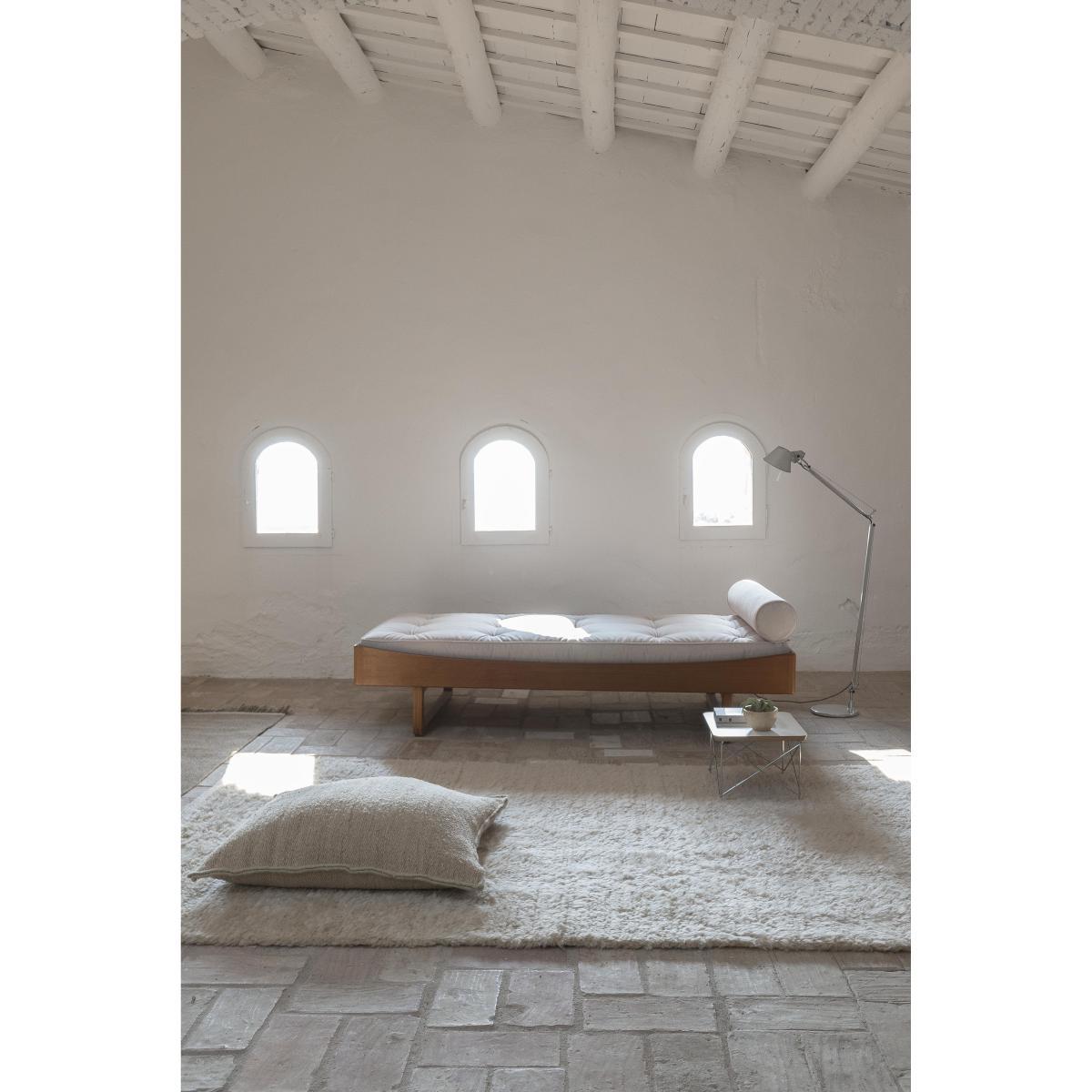 Both interior and regular designer, the British Ilse Crawford has various projects which replace the human with nature at the heart of her work. After two years of development, she is presenting "Wellbeing", her first collaboration with the Nanimarquina brand. This tactile collection which celebrates natural materials is a counterpoint to the modern world and its consequences. This collection of textile accessories (rugs, cushions, etc. ) favours 100% natural and local materials as well as artisanal work. The natural fibres are guaranteed to be free from bleaching and dyeing in order to minimise their impact on the craftspeople and on the environment. Wool is spun then woven by hand by local craftspeople who use traditional artisanal techniques. The criteria defined for the Well Being collection included natural, sustainable and local fibres, spun by hand, free from bleach and dyes. These demands encouraged the Nanimarquina team to initiate an in-depth investigation process and to work with a great variety of materials, leading to a conscious sensory and beautiful result, focused on the human being. All the innovations applied constituted progress in Nanimarquina's body of knowledge in terms of manufacturing. The Wellbeing collection uses Afghan wool, nettle, hessian, linen, silk from Tussar as well as cork, wood, raw wool and raw cotton. All these materials are local: they are carefully sourced by the Nanimarquina team, as close as possible to the production site. These accessories with a simple and comforting beauty take shape through natural materials, and authentic finishes which encourage the senses to awaken. They add warmth, softness and comfort in our interiors. The "Well being" collection is all about softness, simplicity and wellness. At the heart of this collection: a real expertise and the desire to design beautiful products based on tactility, materiality, craftsmanship and quality. Ilse Crawford on her work: "I am attentive to the finishes and colours, but also the production methods and lifespan of my creations via a vast sourcing work. With my colleagues, we favour natural materials which speak to our senses. We want to create pieces which are really so pleasant that they look like a photo. We aren't there to produce the image, rather to create concrete environments. We work with committed entrepreneurs, who want to create a better world. I am invariably dedicated to projects which combine wellbeing, functionality and sustainable development.