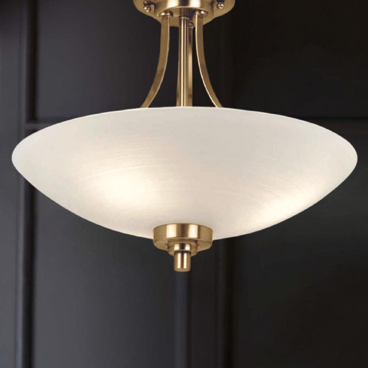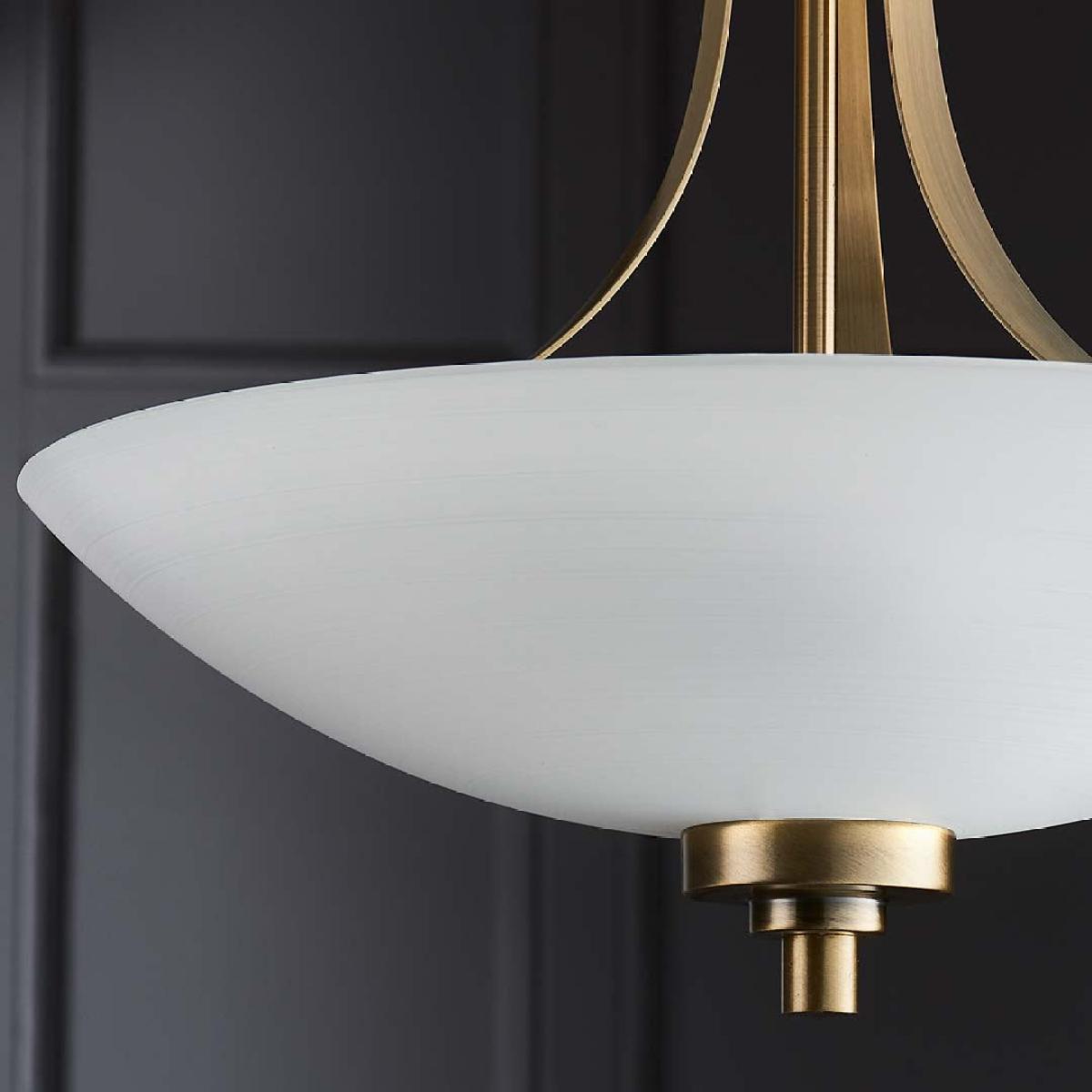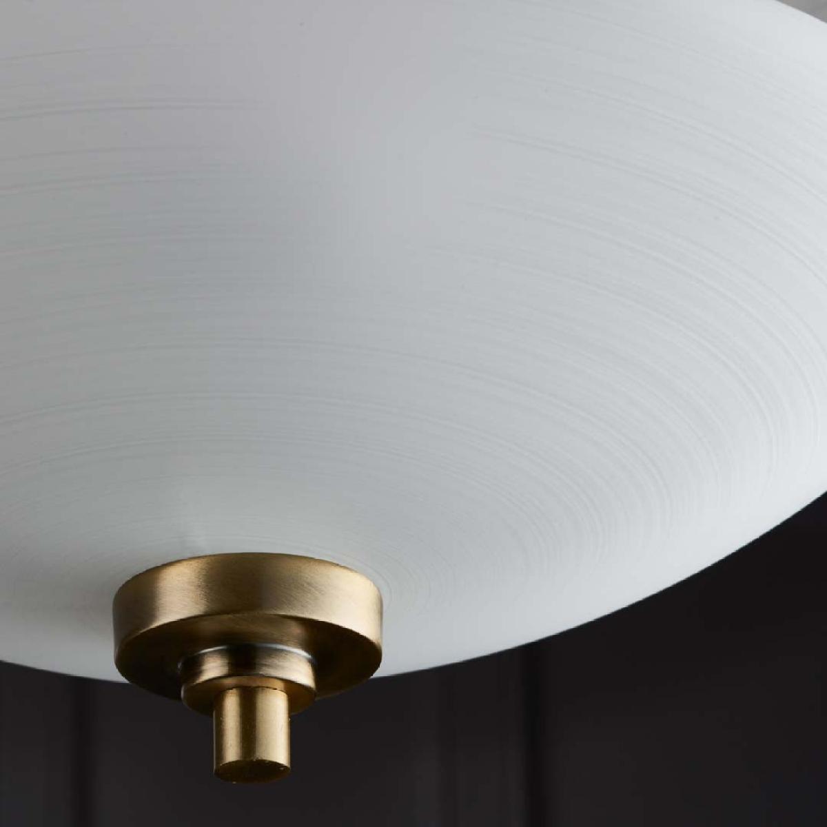 Traditional ceiling light boasting an antique brass finish. A beautiful addition to your home, this semi-flush ceiling light is part of the Welles range from Endon. Finished in antique brass throughout, all 3 light bulbs are housed within a glass shade with antique brass detailing at the bottom. The shade has been painted white and boasts a very faint line pattern. It is perfect for homes with low ceilings and is set to look great in living rooms, dining rooms, hallways and bedrooms. Traditional ceiling light boasting an antique brass finish. A beautiful addition to your home, this semi-flush ceiling light is part of the Welles range from Endon. Finished in antique brass throughout, all 3 light bulbs are housed within a glass shade with antique brass detailing at the bottom. The shade has been painted white and boasts a very faint line pattern. It is perfect for homes with low ceilings and is set to look great in living rooms, dining rooms, hallways and bedrooms.