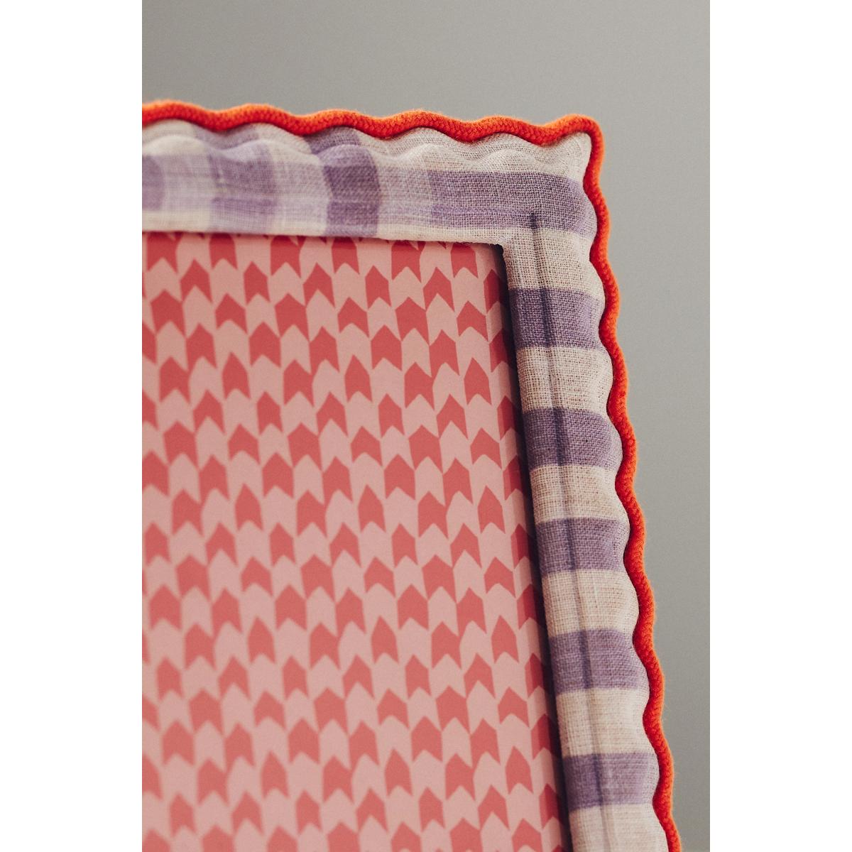 I love this picture frame for adding a pop of colour and texture to both modern and eclectic interiors. Its wavy edge detail and vibrant hues make it a playful yet stylish choice for feature walls or side tables. It works particularly well in rooms with a relaxed, layered aesthetic-think boho chic or contemporary spaces with colourful accents. To style it effectively, consider pairing it with artwork or smaller frames in complementary colours, and place it on a shelf or mantel where its bold design can be appreciated without overwhelming the space. It’s a versatile piece that brings personality and charm to any room.