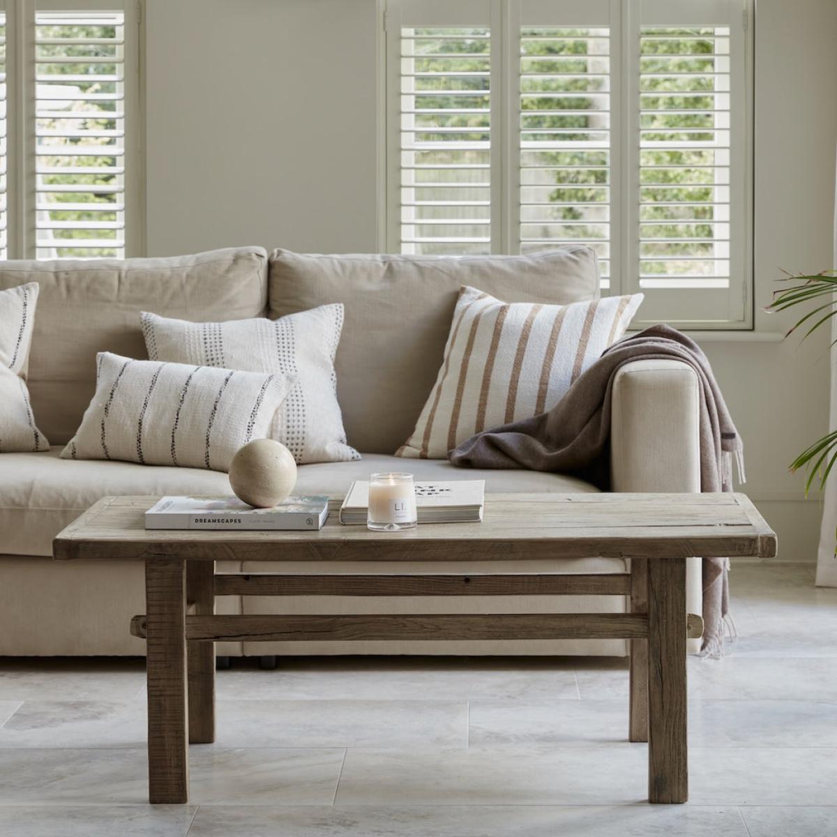 This rustic style coffee table will add an authentic touch to your home. Made from reclaimed elm each one is unique with plenty of character in the wood to add a vintage inspired look to your home. With a rectangular shaped top, the base of the table is connected by wooden beams which provide extra depth tp the look whilst maintaining a light & airy feel. Given the nature of the reclaimed wood, you should expect a worn characterful look to the wood which only adds to its charm in our view.