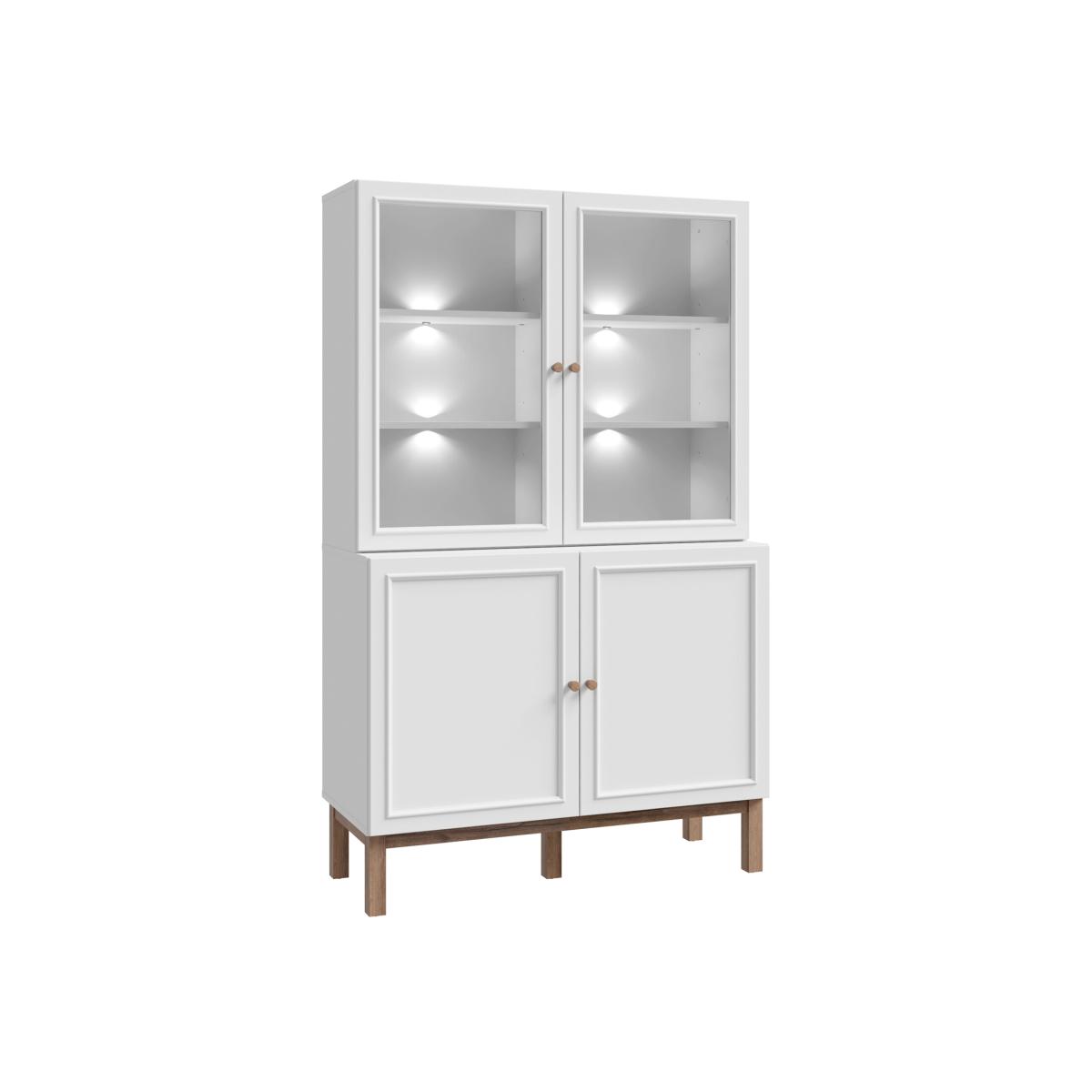 Showcase your treasures in style with the Wensley Display Cabinet with LED Lights. Designed with a modern aesthetic, this cabinet features manufactured wood construction and comes with lights to illuminate your display items. The cabinet includes a soft-closing system and stylish wooden knob handles, combining elegance with practical functionality. Perfect for living rooms or dining areas, it transforms any space into a chic, organised display zone. With its light grey and oak finish, this display cabinet brings a contemporary yet warm touch to your home decor while keeping your favourite items showcased in style.