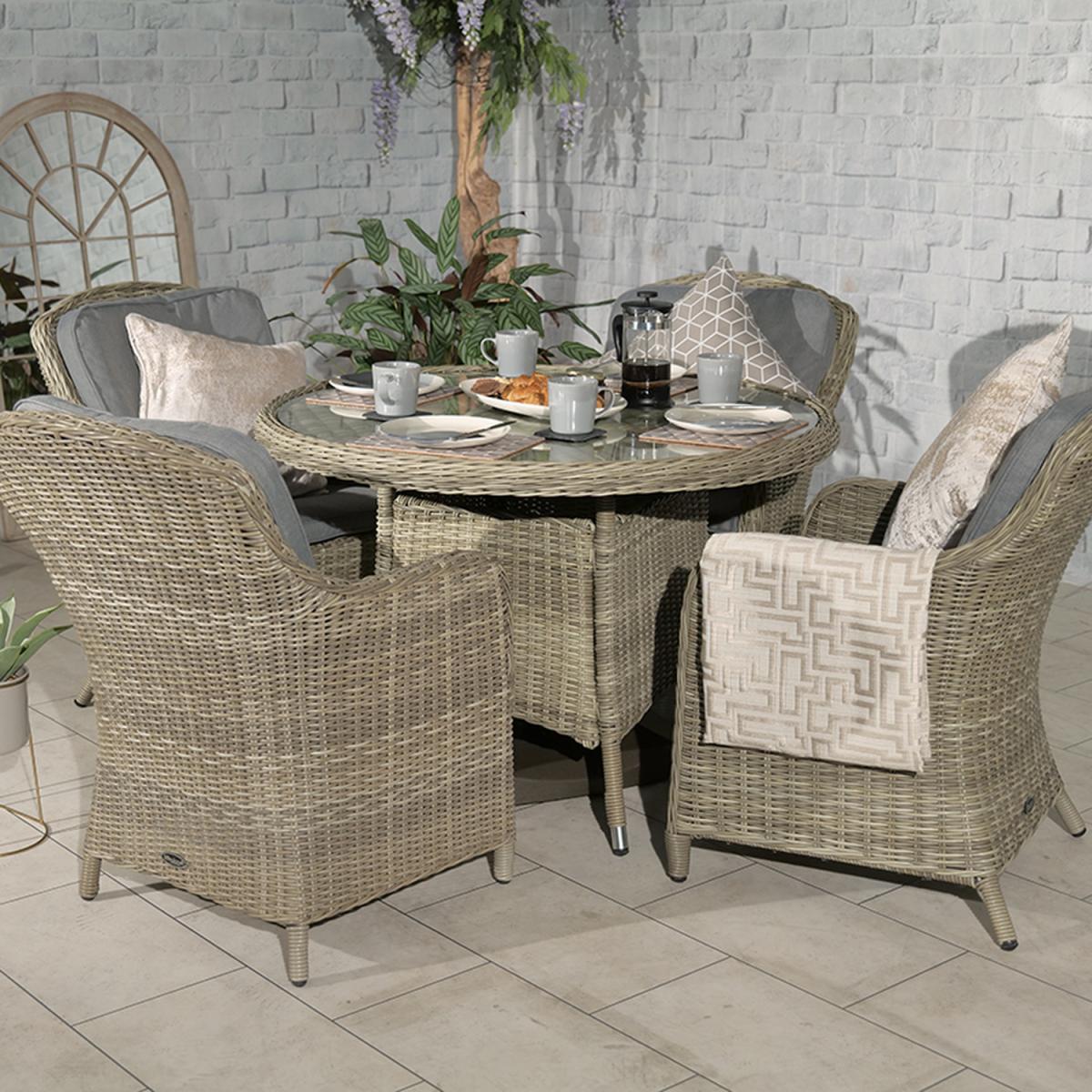 WENTWORTH 4 Seater Round Imperial Dining Set - Neutral