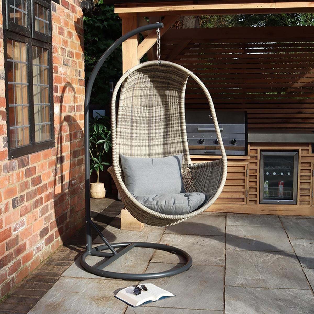 The Wentworth hanging pod chair, complete with weather shield seat and back cushions provide enough room for one person, so you can relax in luxurious comfort and watch the world go by. Retaining classic Wentworth style with its steel framework and hand-woven, synthetic, half round weave rattan it offers style, comfort, strength and durability. This egg chair comes with an easy to assemble steel frame and connecting chain as well as comfortable cushions for that relaxing feel. Supplied with a steel frame and tough connecting chain, this egg chair is built to last giving you years of outdoor use. With thick cushions and a rounded design, this is a spot you'll want to rest and relax in at every opportunity. The synthetic rattan weave on this egg chair gives it a traditional yet modern look to suit almost any style of outdoor decor.