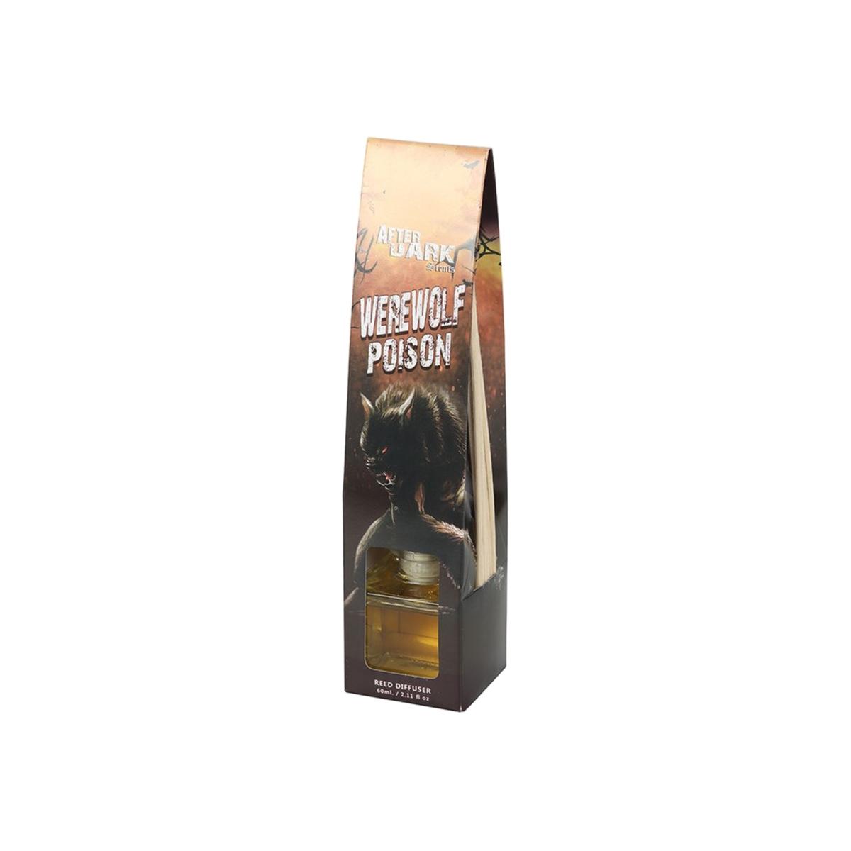 Ward off evil beasts with this Werewolf Poison reed diffuser. This set includes 60ml of vanilla fragrance oil for keeping cryptids at bay and is perfect for adding a touch of excitement to your favourite dark hideaway. Do not ingest. Keep oil away from eyes, skin, furniture and painted surfaces. Part of the After Dark collection of gothic home fragrance accessories.