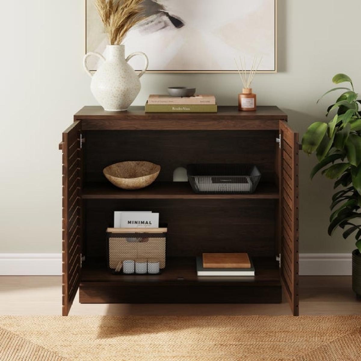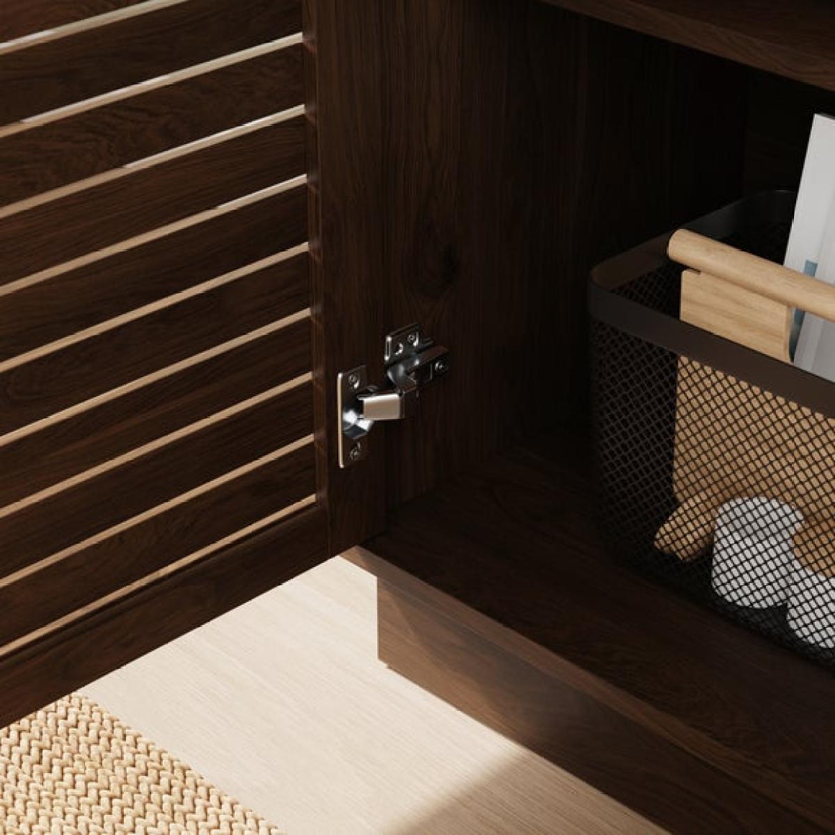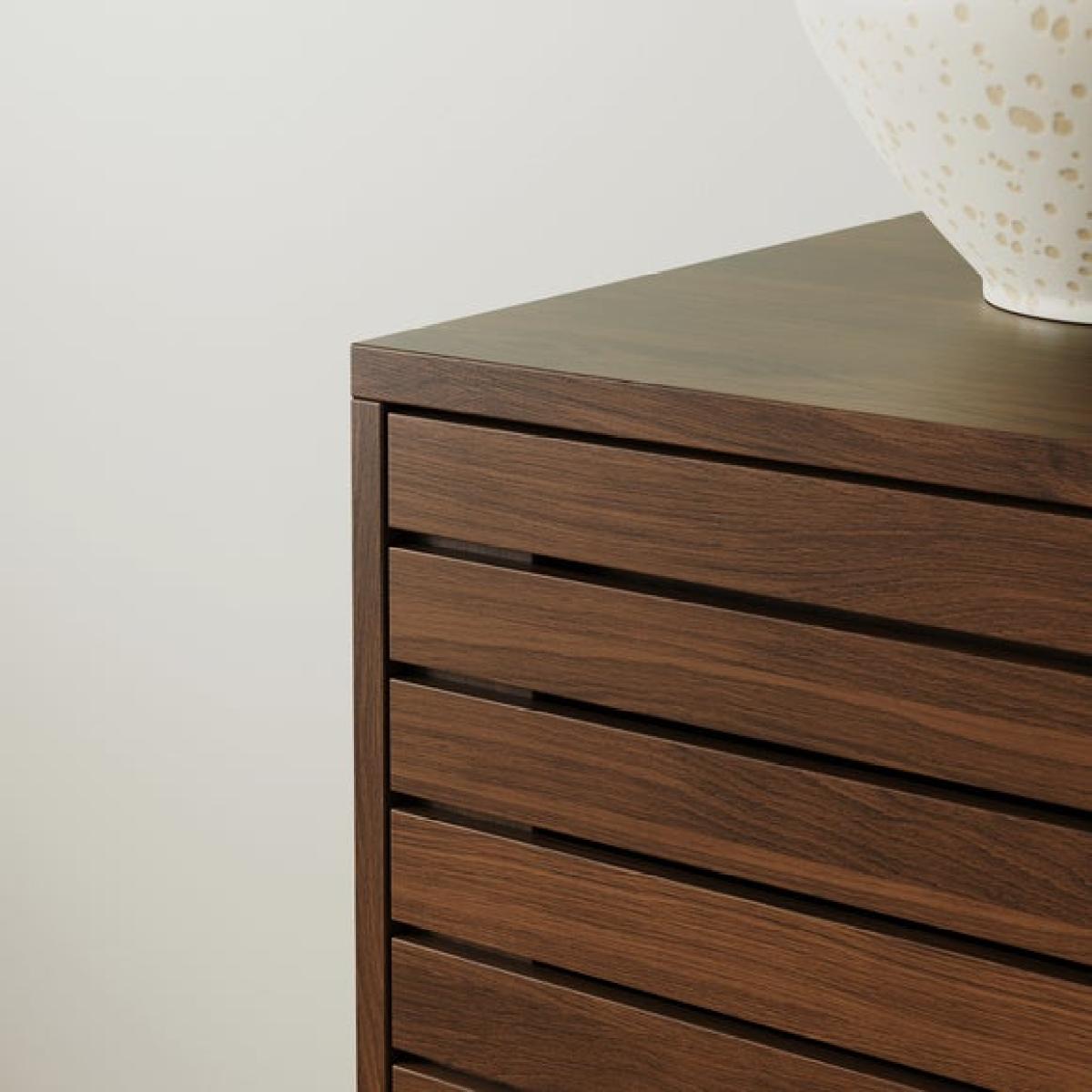 * Modern sideboard * Slatted front * Adjustable shelves * Cable management This compact sideboard showcases the Wesley range's signature slatted front, with adjustable shelving and integrated cable access. In either a light oak effect or rich walnut effect, it's a stylish solution for storing everyday essentials in tighter spaces.