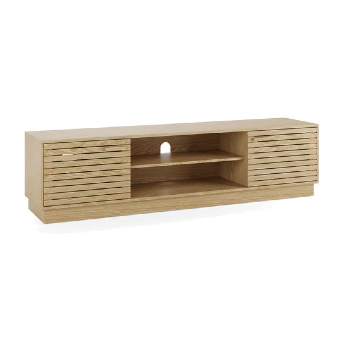 * Modern TV unit * Slatted front * Adjustable shelves * Cable management Designed for modern living rooms, the Wesley wide TV unit features a slatted front for a contemporary edge, with adjustable shelves and built-in cable management to keep things neat. Choose from light oak effect or walnut effect to suit your space.