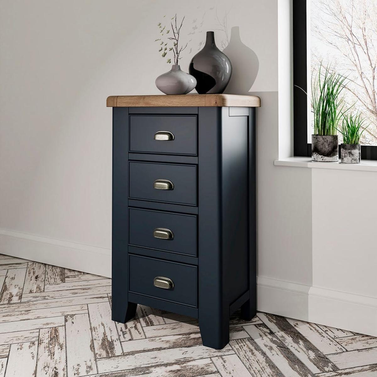 Wessex Smoked Oak Blue Painted 4 Drawer Tallboy