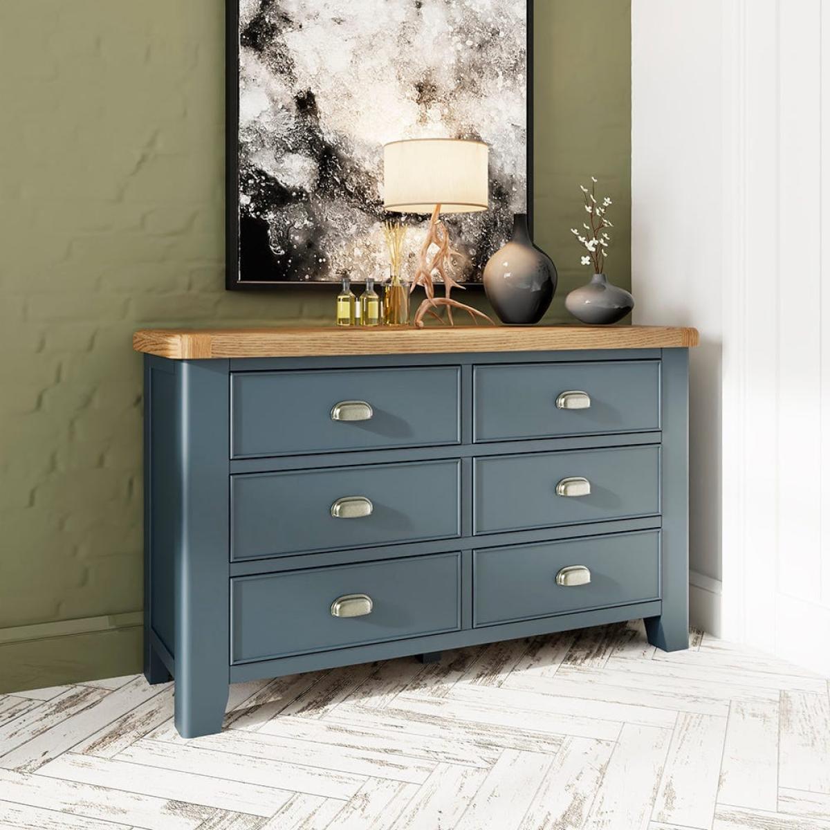 Wessex Smoked Oak Blue Painted Chest of 6 Drawers