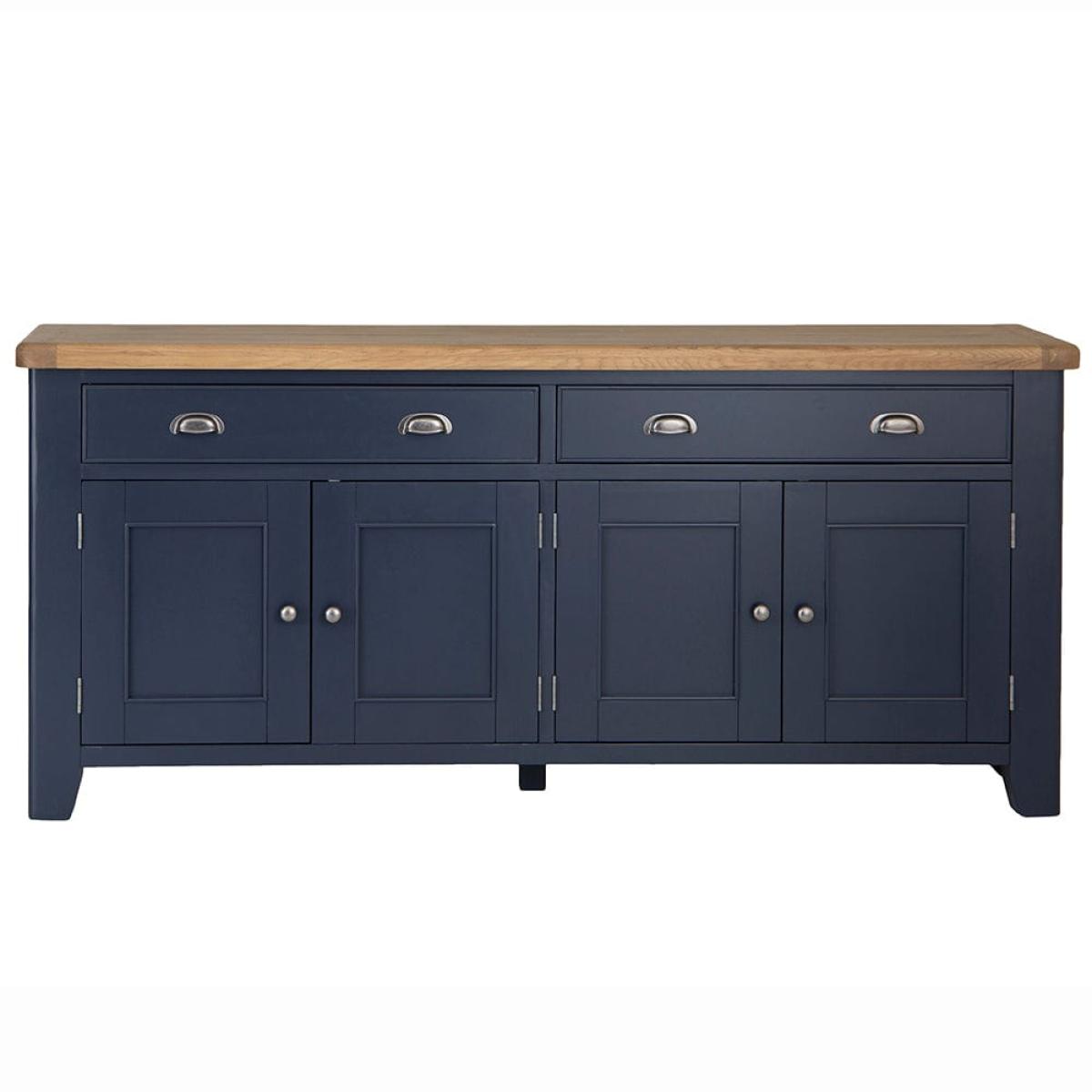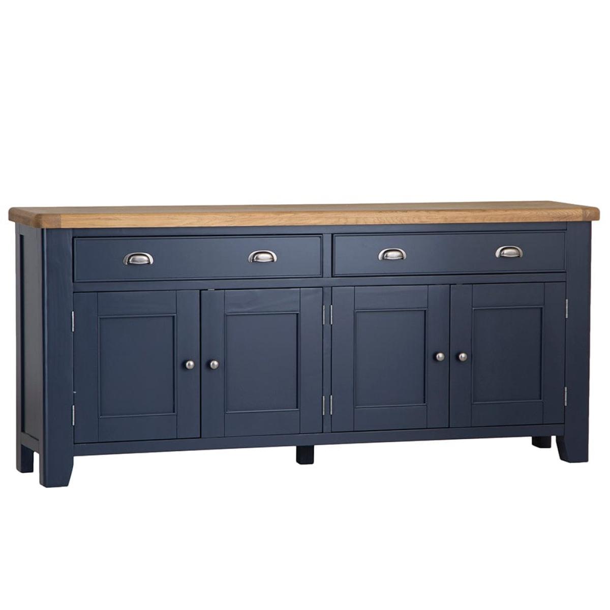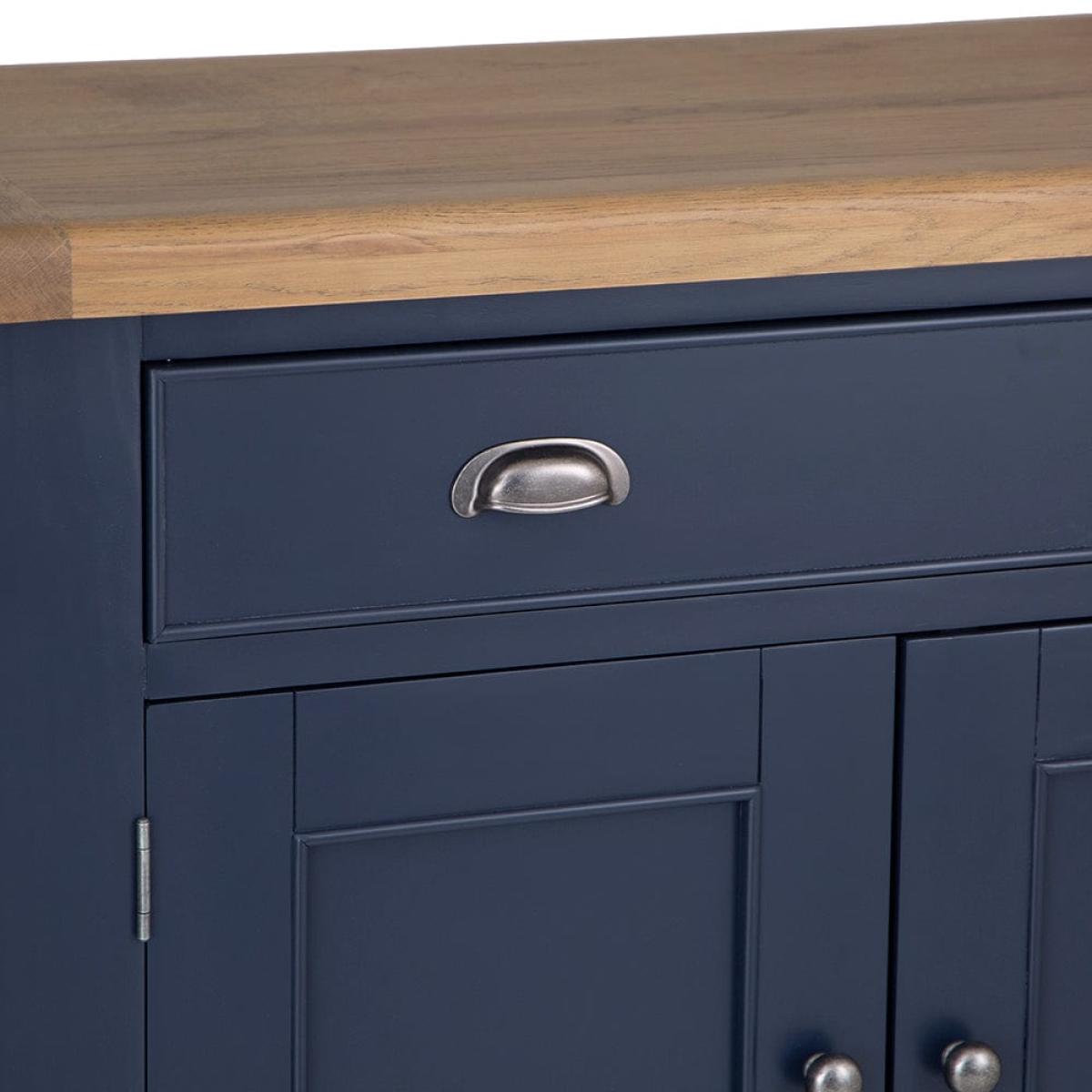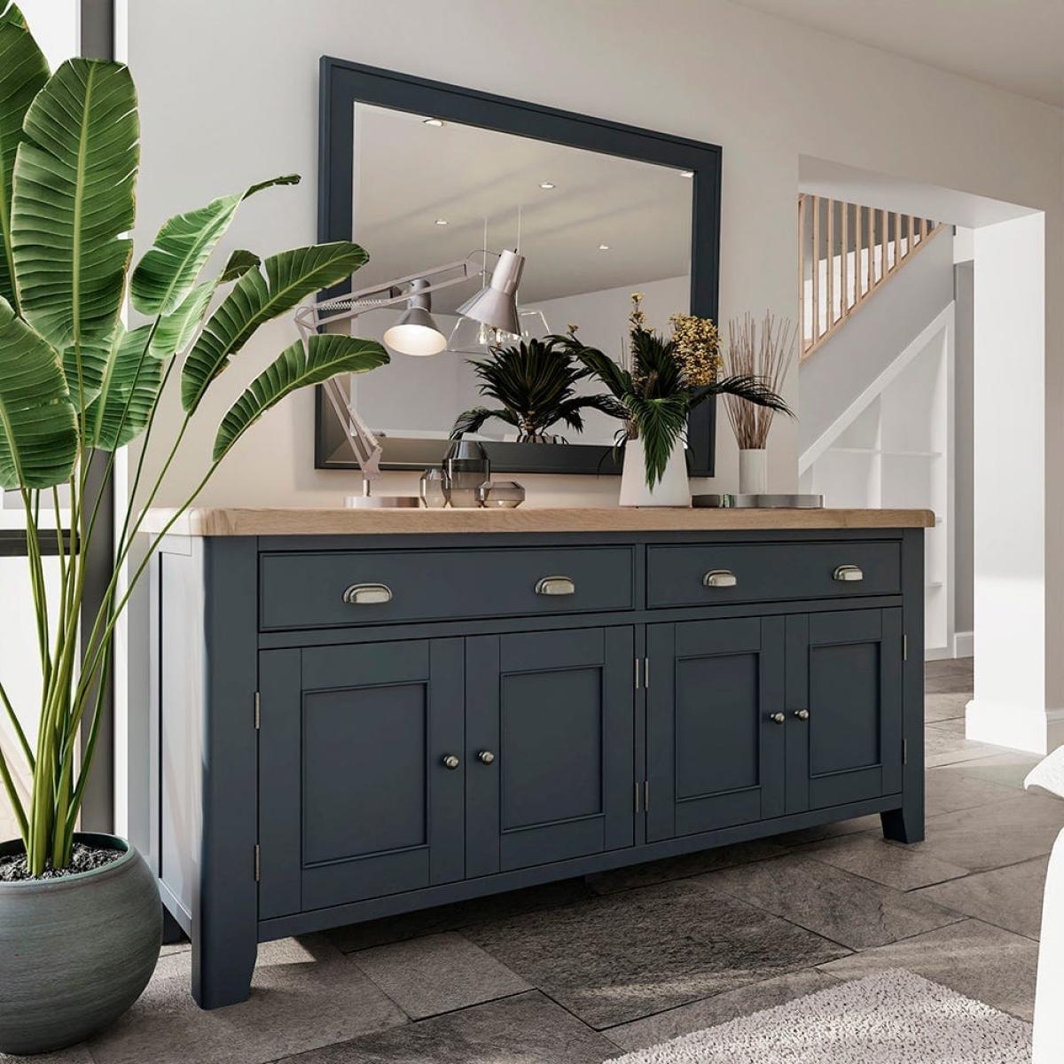 Indulge yourself in a little bit of luxury. Our Wessex Smoked Oak Blue Painted Collection exudes class and style with its chunky oak frames, smooth rounded corners and unique appearance. The smoked colour of the wood is unlike any of our other collections, and this uniqueness transcends itself across the range with a host of statement pieces you won’t find elsewhere. Flagship items in this gorgeous oak Bedroom, Living and Dining furniture collection include a super-size Larder Unit, a cleverly designed Extra Large Tall Drinks Cabinet and an eye-catching Sideboard Wine Rack amongst other traditional oak furniture items. The deep blue painted frames make this gorgeous collection an elegant addition to the home. This range is available in an unpainted oak finish, called Wessex Smoked Oak.