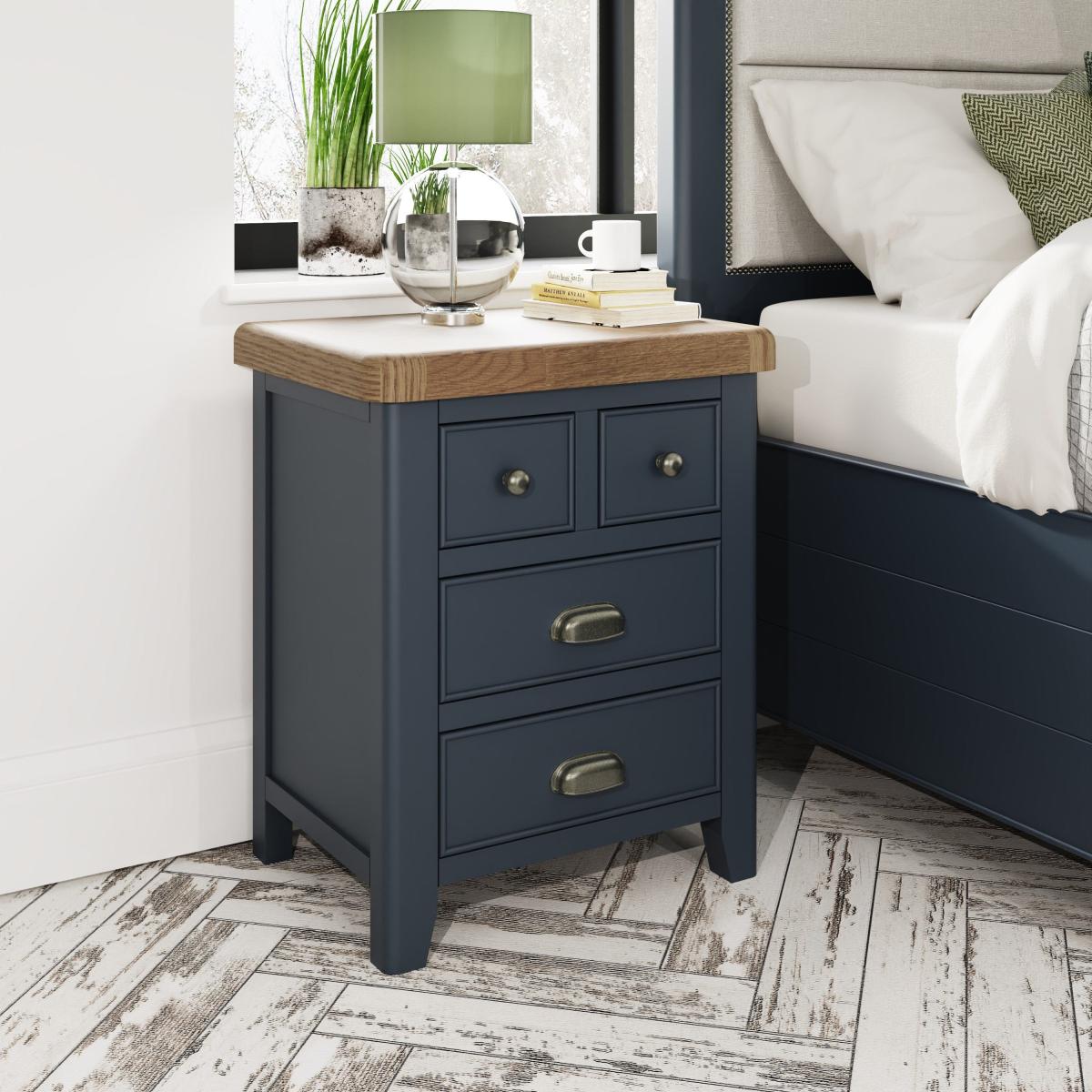Wessex Smoked Oak Blue Painted Extra Large Bedside Table