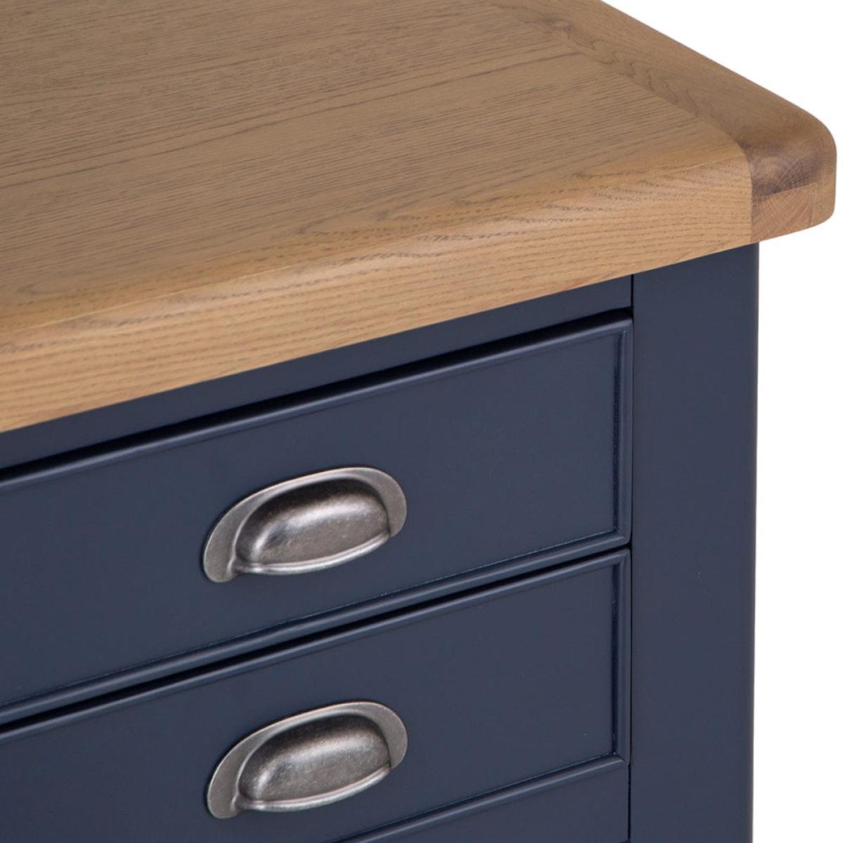 Indulge yourself in a little bit of luxury. Our Wessex Smoked Oak Blue Painted Collection exudes class and style with its chunky oak frames, smooth rounded corners and unique appearance. The smoked colour of the wood is unlike any of our other collections, and this uniqueness transcends itself across the range with a host of statement pieces you won’t find elsewhere. Flagship items in this gorgeous oak Bedroom, Living and Dining furniture collection include a super-size Larder Unit, a cleverly designed Extra Large Tall Drinks Cabinet and an eye-catching Sideboard Wine Rack amongst other traditional oak furniture items. The deep blue painted frames make this gorgeous collection an elegant addition to the home. This range is available in an unpainted oak finish, called Wessex Smoked Oak.