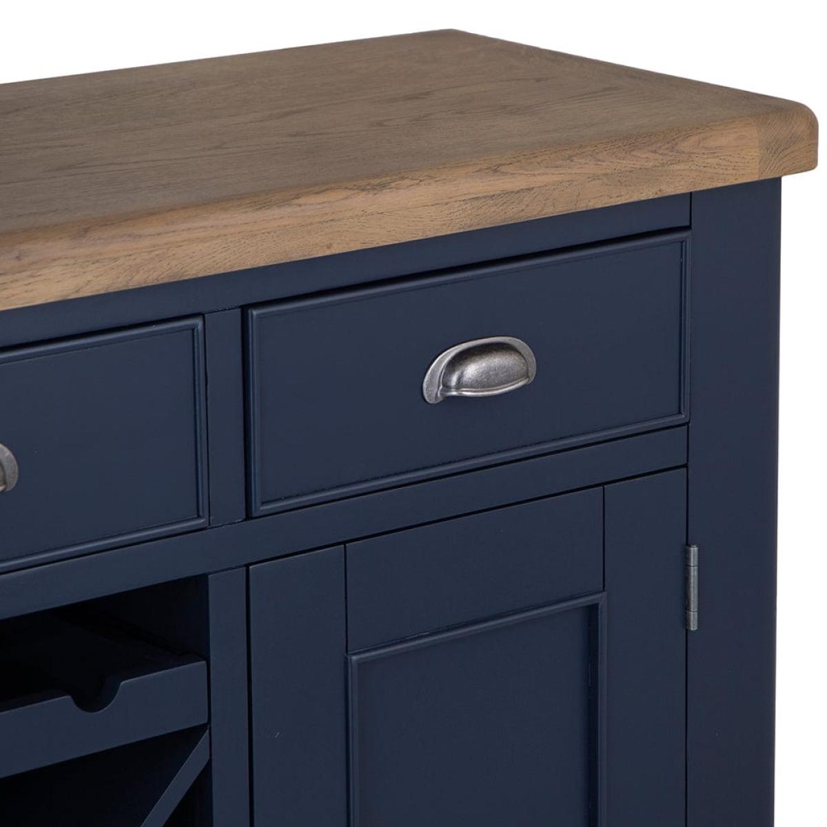 Indulge yourself in a little bit of luxury. Our Wessex Smoked Oak Blue Painted Collection exudes class and style with its chunky oak frames, smooth rounded corners and unique appearance. The smoked colour of the wood is unlike any of our other collections, and this uniqueness transcends itself across the range with a host of statement pieces you won’t find elsewhere. Flagship items in this gorgeous oak Bedroom, Living and Dining furniture collection include a super-size Larder Unit, a cleverly designed Extra Large Tall Drinks Cabinet and an eye-catching Sideboard Wine Rack amongst other traditional oak furniture items. The deep blue painted frames make this gorgeous collection an elegant addition to the home. This range is available in an unpainted oak finish, called Wessex Smoked Oak.