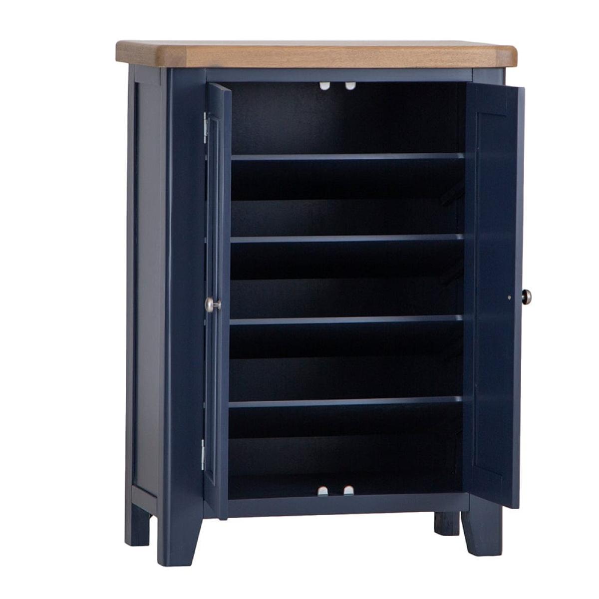 Indulge yourself in a little bit of luxury. Our Wessex Smoked Oak Blue Painted Collection exudes class and style with its chunky oak frames, smooth rounded corners and unique appearance. The smoked colour of the wood is unlike any of our other collections, and this uniqueness transcends itself across the range with a host of statement pieces you won’t find elsewhere. Flagship items in this gorgeous oak Bedroom, Living and Dining furniture collection include a super-size Larder Unit, a cleverly designed Extra Large Tall Drinks Cabinet and an eye-catching Sideboard Wine Rack amongst other traditional oak furniture items. The deep blue painted frames make this gorgeous collection an elegant addition to the home. This range is available in an unpainted oak finish, called Wessex Smoked Oak.