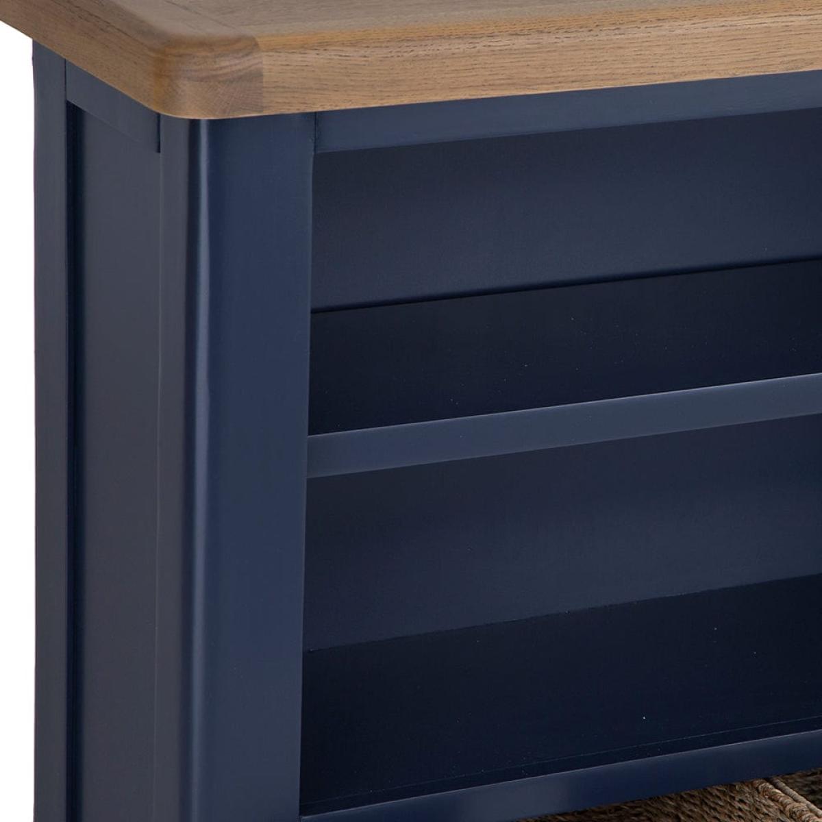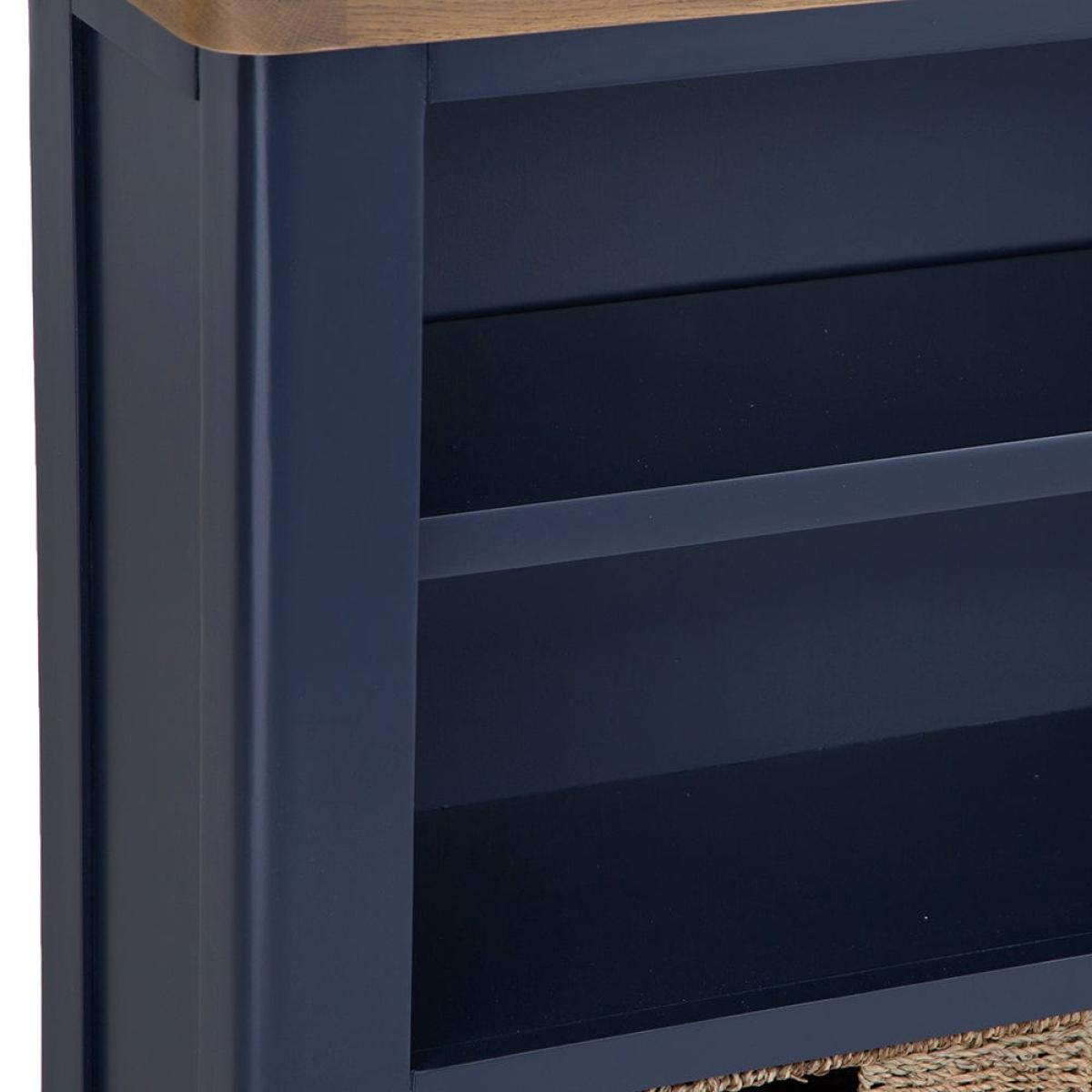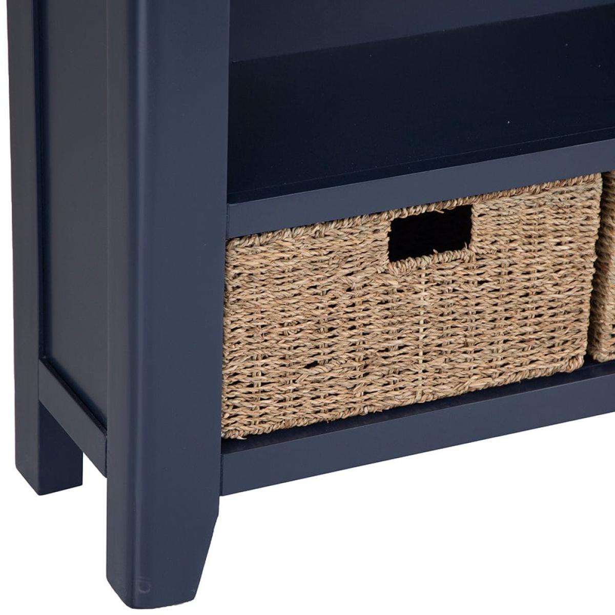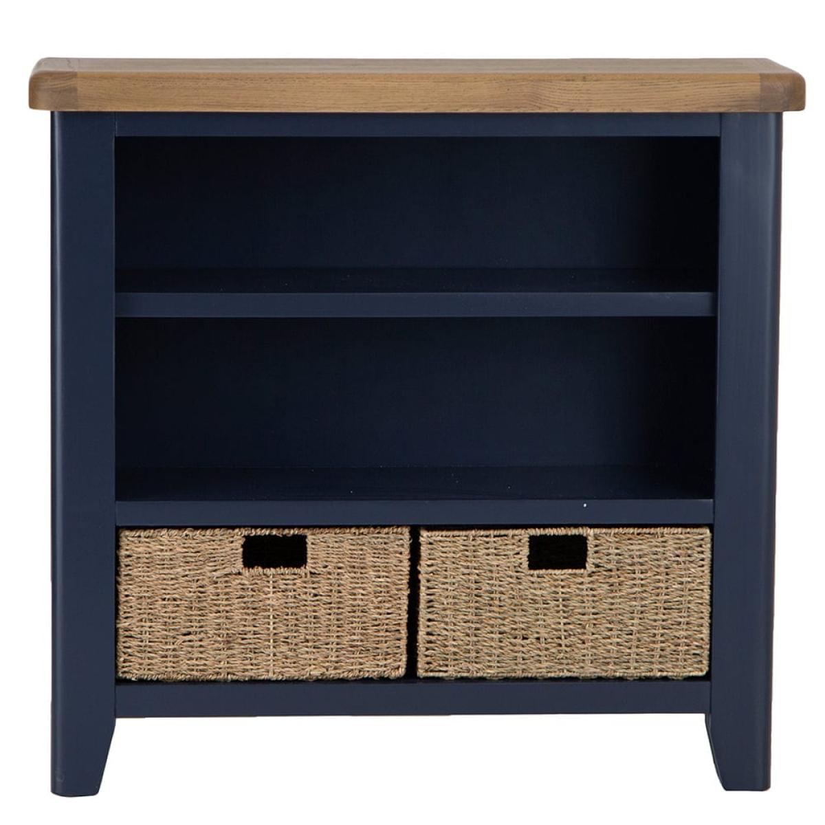 Wessex Smoked Oak Blue Painted Small Bookcase with Wicker Baskets