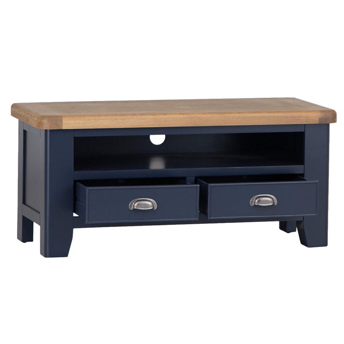 Indulge yourself in a little bit of luxury. Our Wessex Smoked Oak Blue Painted Collection exudes class and style with its chunky oak frames, smooth rounded corners and unique appearance. The smoked colour of the wood is unlike any of our other collections, and this uniqueness transcends itself across the range with a host of statement pieces you won’t find elsewhere. Flagship items in this gorgeous oak Bedroom, Living and Dining furniture collection include a super-size Larder Unit, a cleverly designed Extra Large Tall Drinks Cabinet and an eye-catching Sideboard Wine Rack amongst other traditional oak furniture items. The deep blue painted frames make this gorgeous collection an elegant addition to the home. This range is available in an unpainted oak finish, called Wessex Smoked Oak.