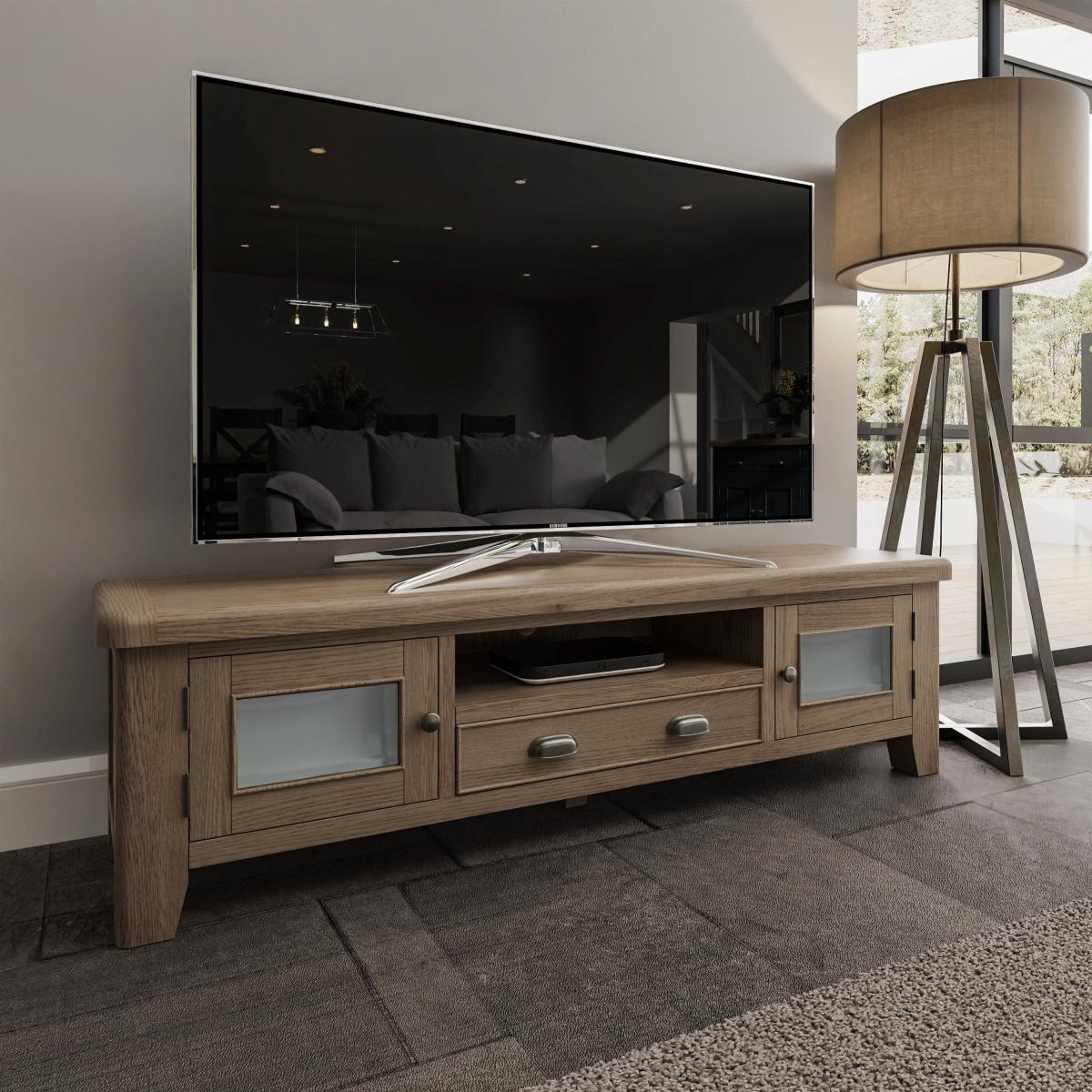 I love the Wessex Smoked Oak unit for its robust, natural aesthetic - it adds warmth and texture to a range of interiors, from rustic to contemporary. It works particularly well in open-plan living spaces or country-style homes, where the timber finish can enhance a cosy yet stylish vibe. Practical styling tips include keeping the top surface uncluttered with a few carefully chosen decorative items, like a vase or a minimal lamp, to showcase its craftsmanship. Behind the glass-fronted drawers, you can organise media accessories neatly, making it as functional as it is attractive. Its sizeable form also makes it perfect for larger TVs, helping to anchor the room without overwhelming the space.